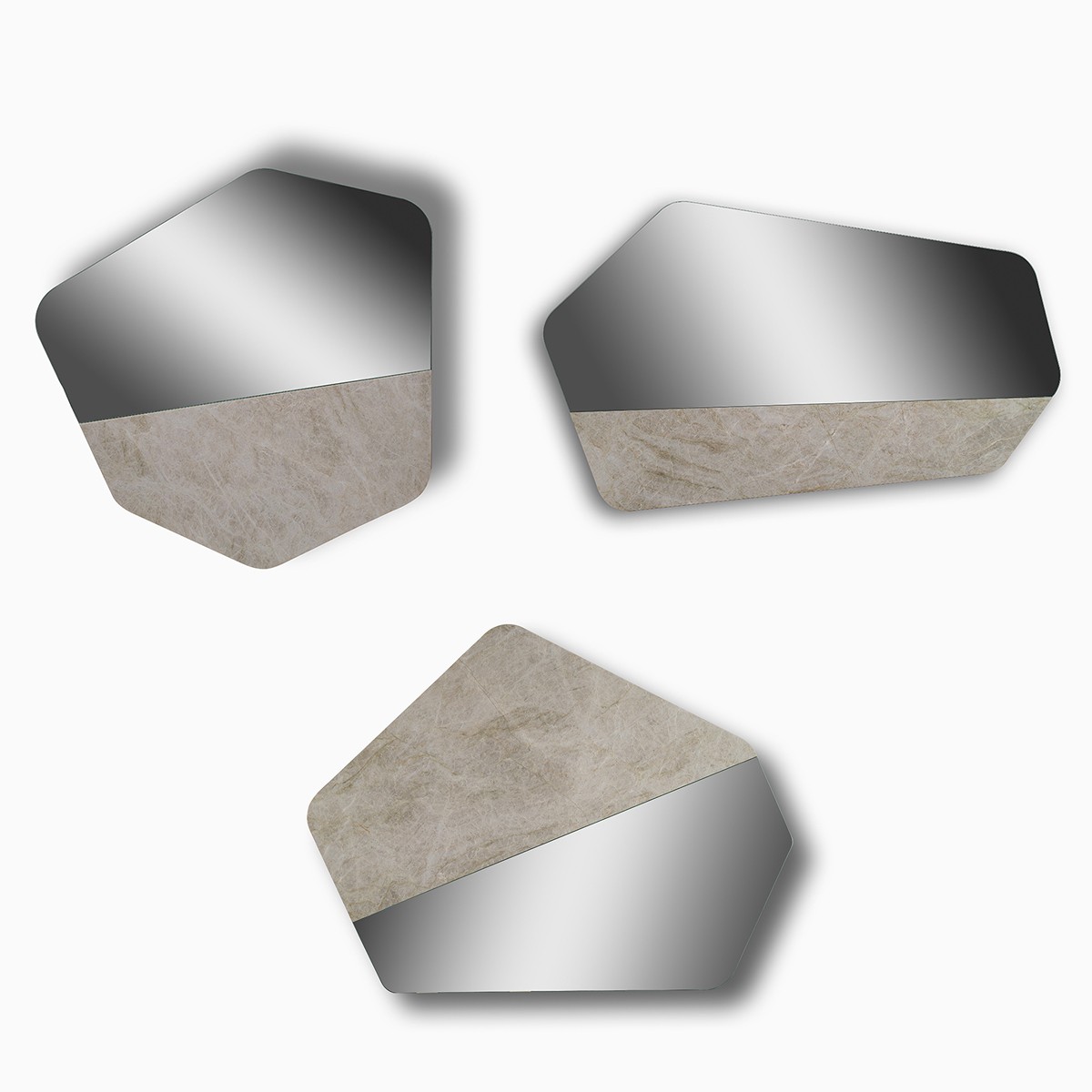 Struttura in legno laccato con Led perimetrale. Struttura frontale composta da specchio neutro e lastra in marmo spessore 10mm.