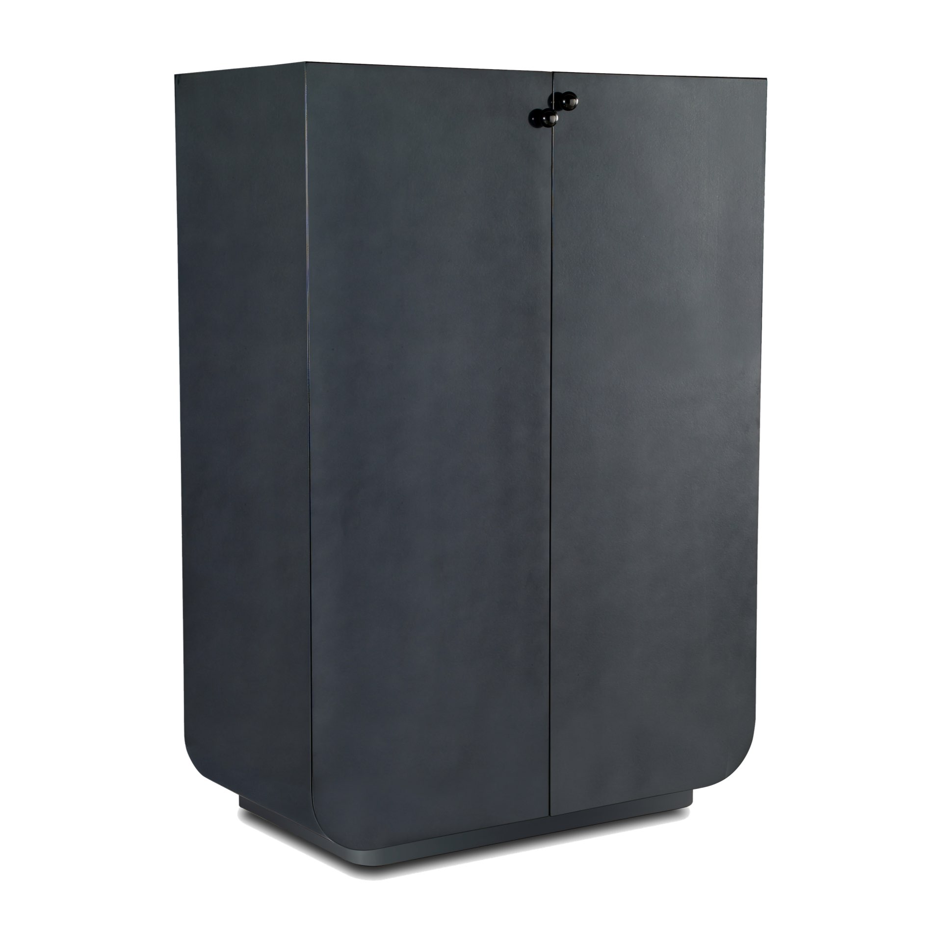 Struttura in legno laccato. Ante e mensole interne laccate. Pomoli in metallo.