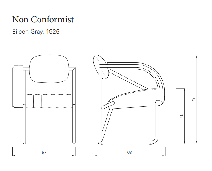 It piques and provokes what one might expect of it, and yet it is inexplicably aesthetic and harmonious – a nonconformist on velvet paws. Eileen Gray commented quite pragmatically on her work with typical understatement: "An armrest was omitted in order to leave the body more freedom in movement and to allow it to bend forward or to turn to the other side unrestricted". Seldom was a nonconformist more ready to talk.