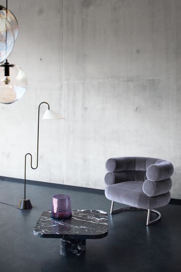 The curved line of the Roattino floor lamp looks as though a snake charmer had made the cable rise and the lamp head bend. An S-shaped bent steel tube guides the cable and rests on a round base. Individual, non-conforming and with a tad of humour, this is a design typical for Eileen Gray. An elegant, swivable fabric shade dims the light and makes Roattino an especially pleasant light source. With the white version of the floor lamp, the Eileen Gray collection offers an extended selection from 2022. The new dimming function equips the popular lamp with a technical update.