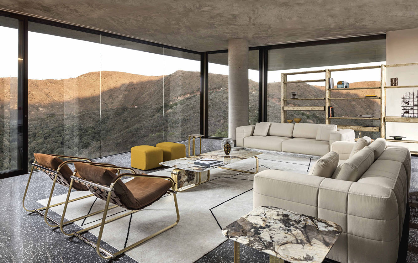 Collection Rubik is composed by sofas with a square structure supported by a metal base are characterized by lightness and elegance. The decorative details of this sofas are the horizontal and vertical stitchings realized with “cordonetto” embroidery applied all over the structure and on loose cushions. The refined look of Rubik sofa makes it suitable for matching with all coffee tables of a living area. It is available in leather and fabric.