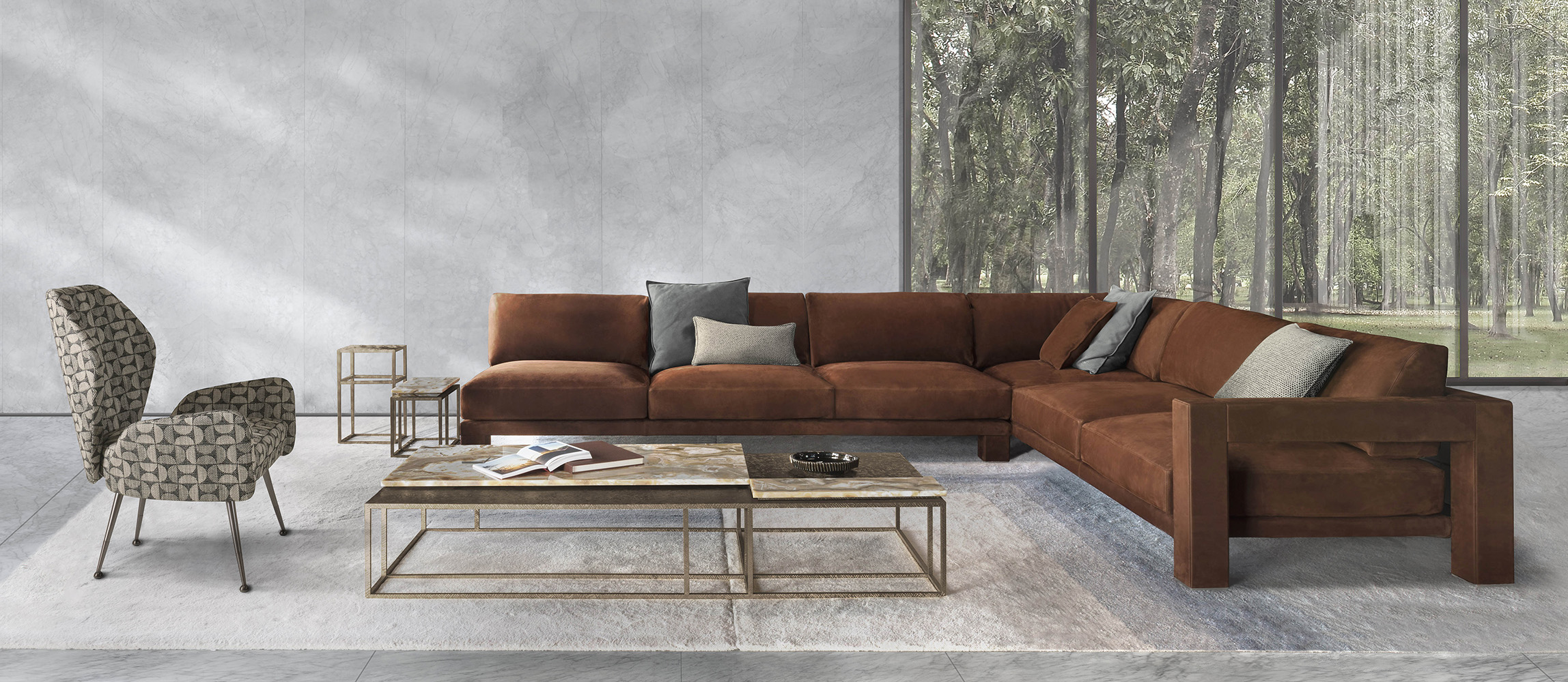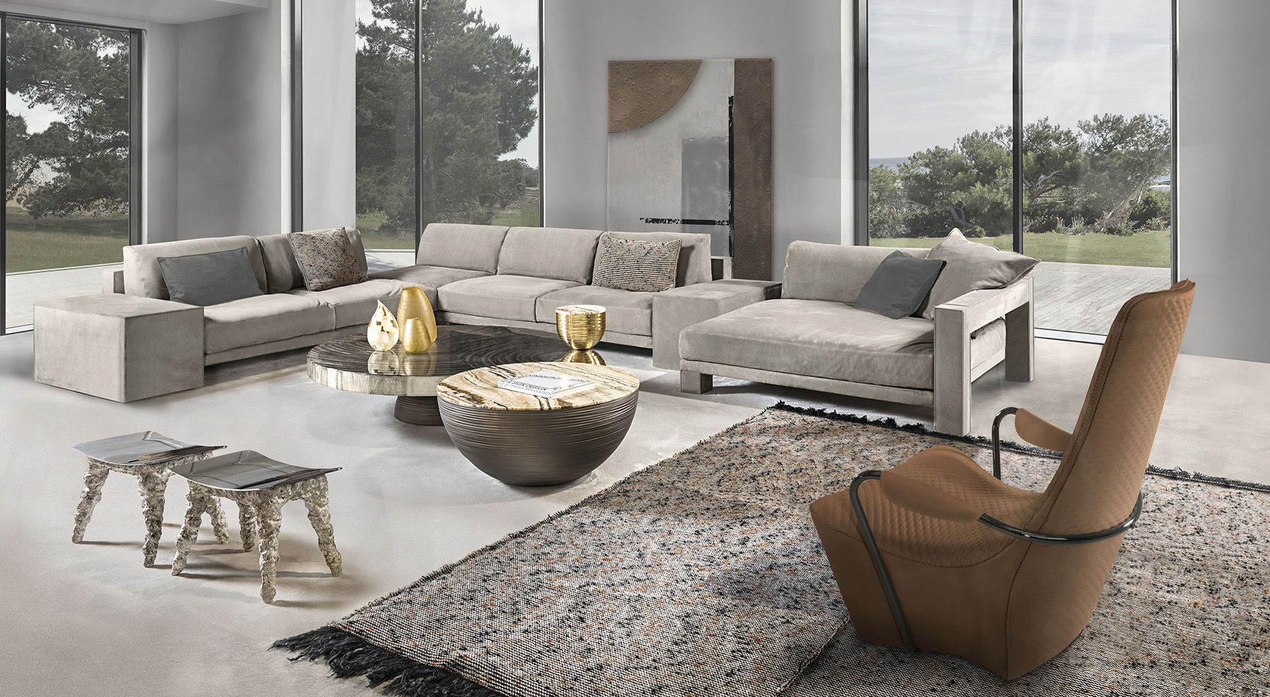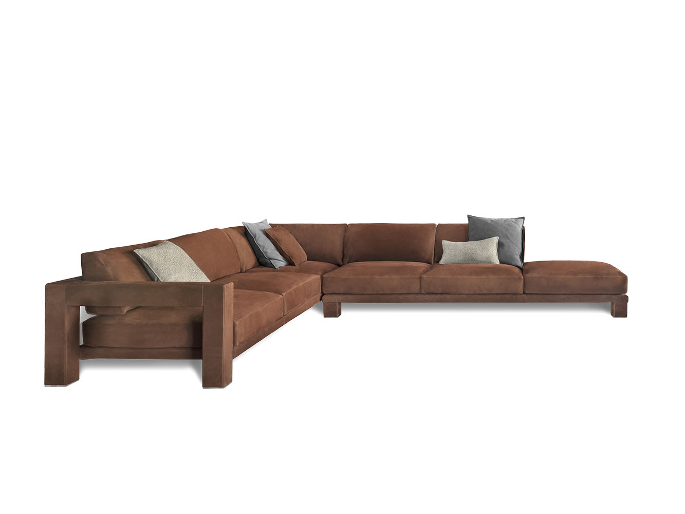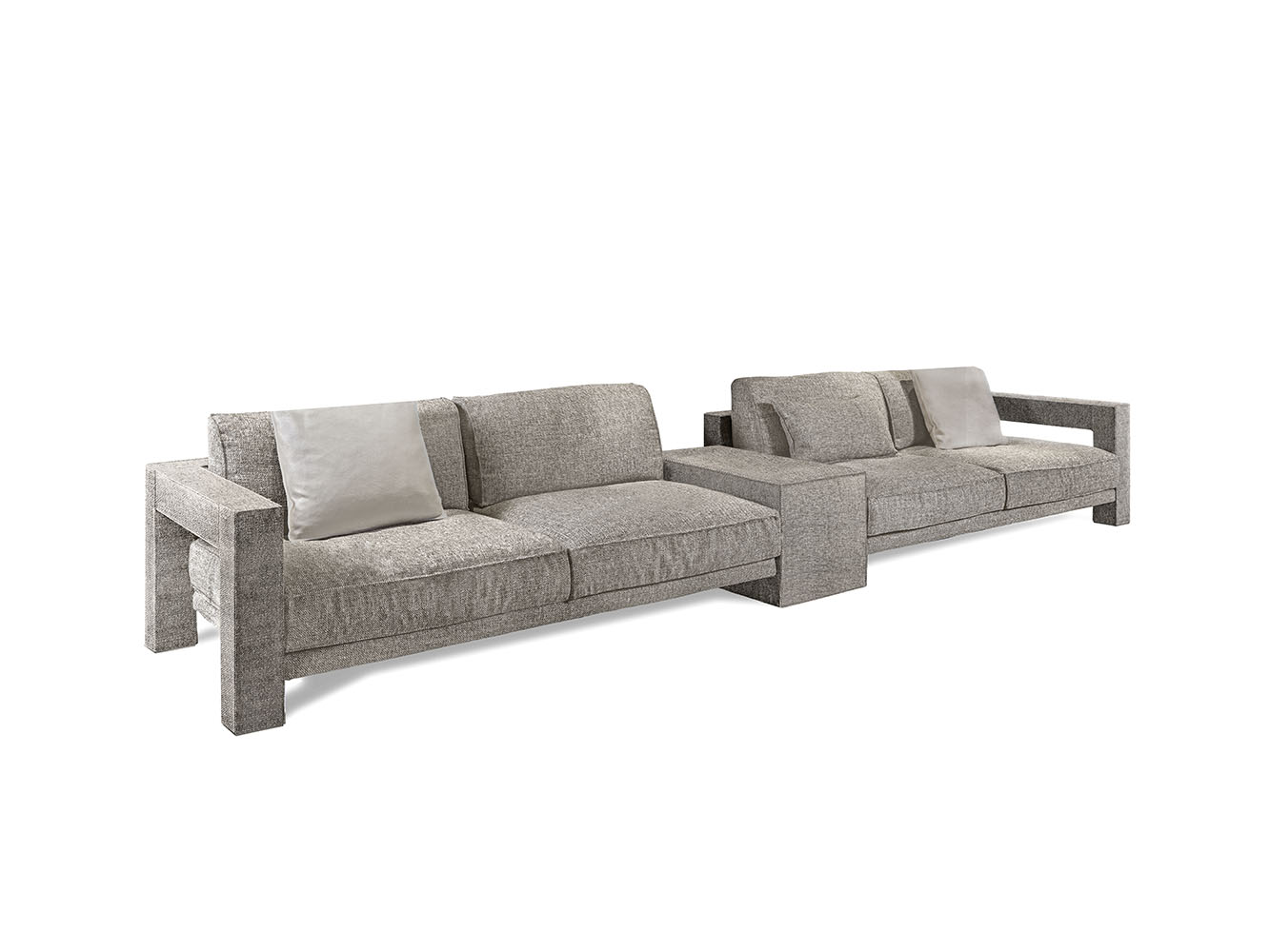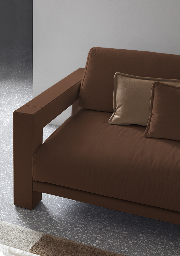 Vision modular sofa is an attractive proposal for fans of square shapes. This item with an essential but sophisticated design makes geometric simplicity its strength, expressing modernity and harmony of proportions. The various available modules allow to create many customised combinations, in order to meet the needs of each customer. The structure of Vision elements has a square section that is completely upholstered with fabrics or leathers, obtaining a perfect balance of volumes, where soft pillows ensure a pleasant sense of relaxation. The external structure of the sofa is accurately upholstered using a sophisticated technique that allows to cover each individual panel without seams.
