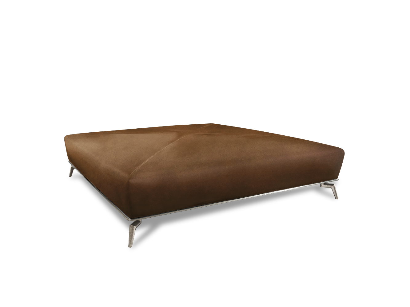 The pouf Janet has a light figure that revisits the art deco-style in the 1920s. Small metal feet, manually engraved to add preciousness, raise the seat off the ground. Available in leather or fabric and with finishes of various colours, this pouf is particularly suitable for a large living area or beside a walk-in-closet.