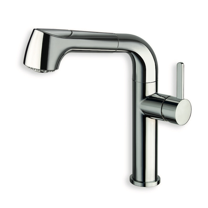 Single-control Regular kitchen mixer, single-hole deck-mounted swivel spout, with right-hand side mechanical mixing and double click opening system, detachable mini showerhead, H. 283 mm