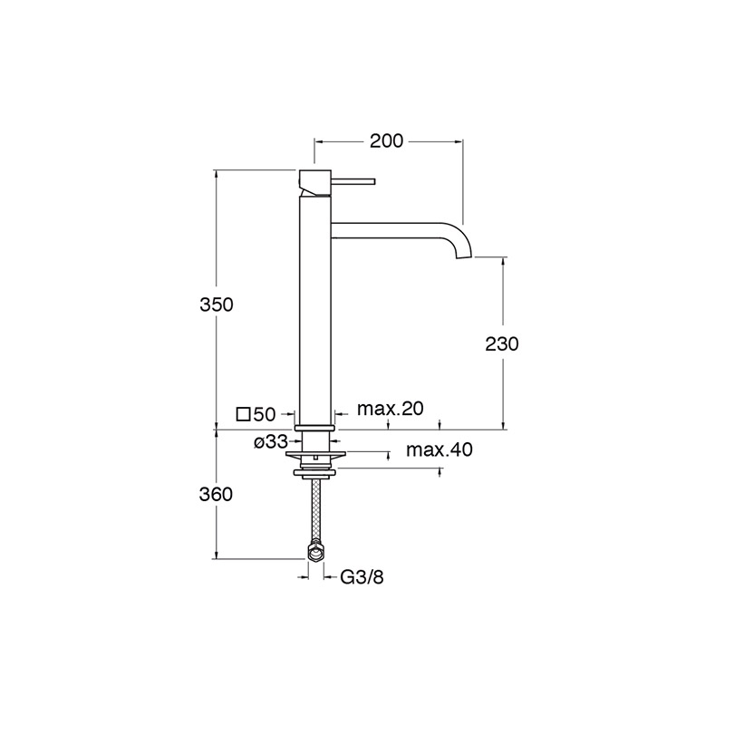 Single-control single-hole deck-mounted kitchen mixer, with mechanical front mixing. Swivel body, H. 350 mm