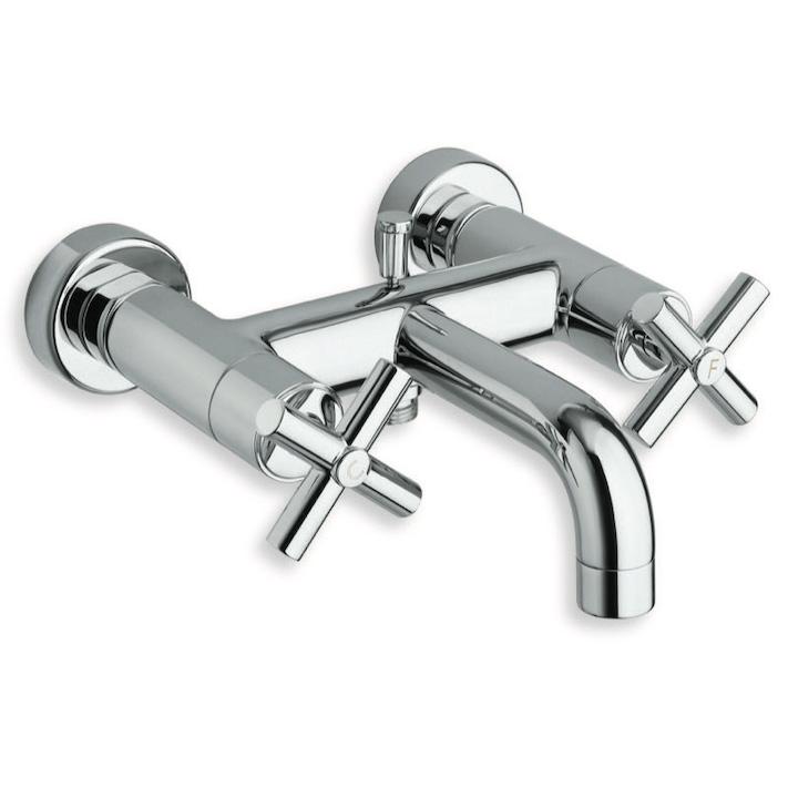 Dual-control wall-mounted external bath mixer, with mechanical mixing, automatic diverter with 2 outlets, spout length 203 mm