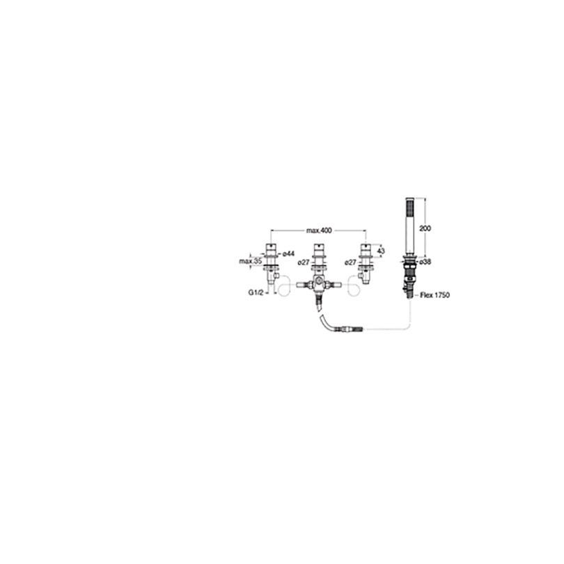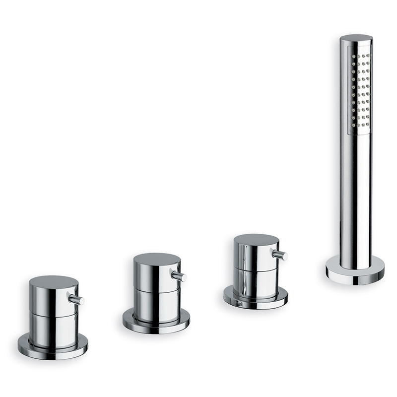 Inspectable dual-control 4-hole deck-mounted bath edge mixer, with mechanical mixing, diverter with 2 outlets, detachable anti-scale mini showerhead and FOLLOW ME *****, complete with recessed part