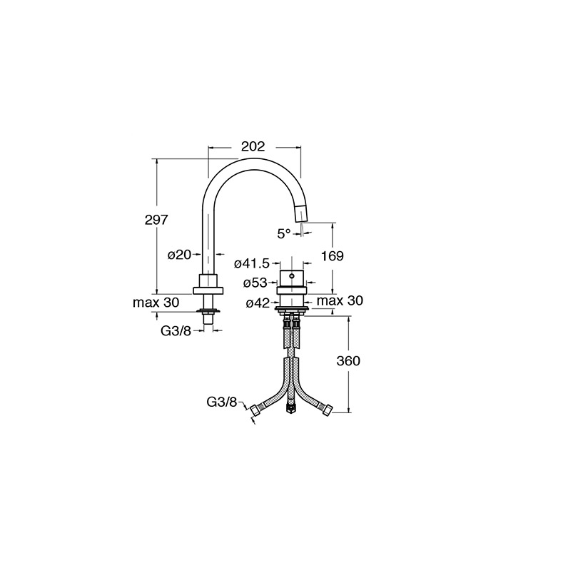 Single-control 2-hole deck-mounted Regular Washbasin mixer, with relocatable mechanical side mixing, without drain