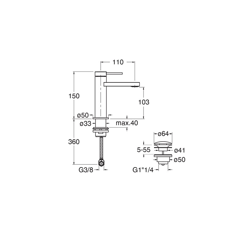 Single-control single-hole deck-mounted Regular Washbasin mixer, with mechanical mixing and 1" 1/4 U&D* drain