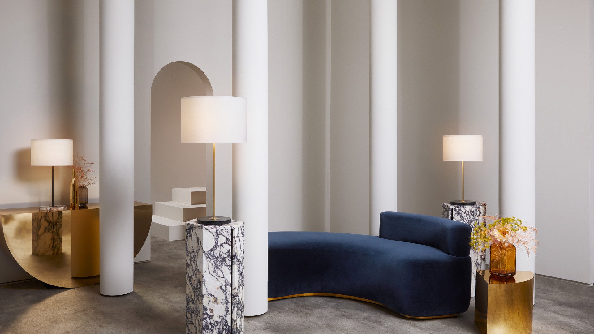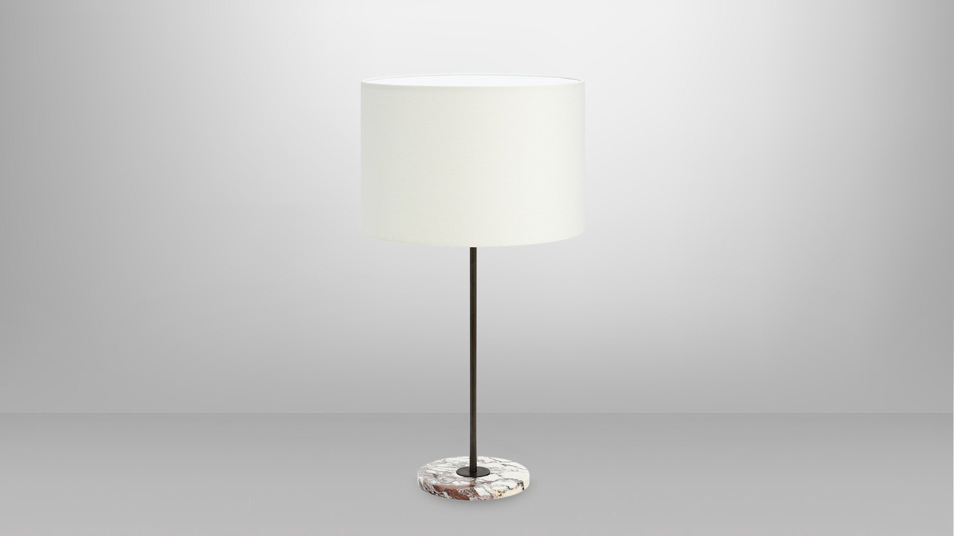 Inspired by fine metal railings, the minimal nature of the stem joins the rich texture of the Nero Marquina and Calacatta Viola marble base and textured linen shade. A luxury version of the most simplistic elements of a table light. The perfect combination to bring simple elegance to any interior. The solid diffuser at the top covers the bulb whilst complementing the finish of this elegant light. Both combinations are available in two sizes.