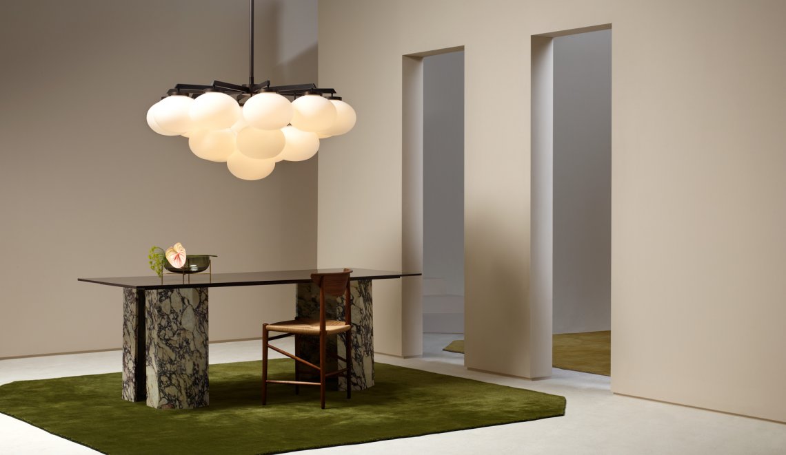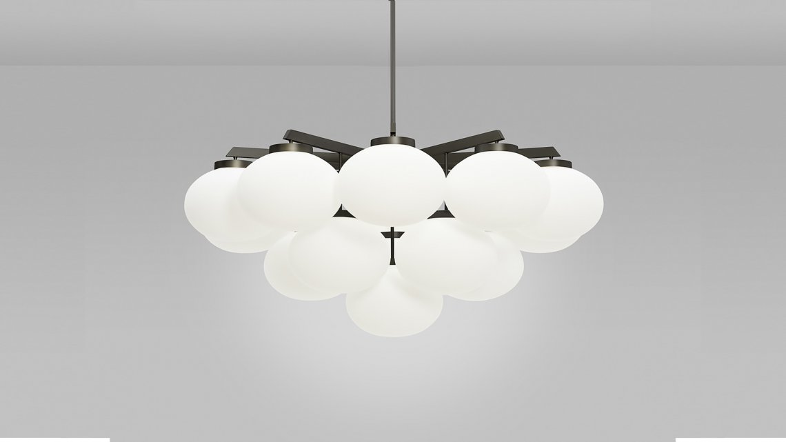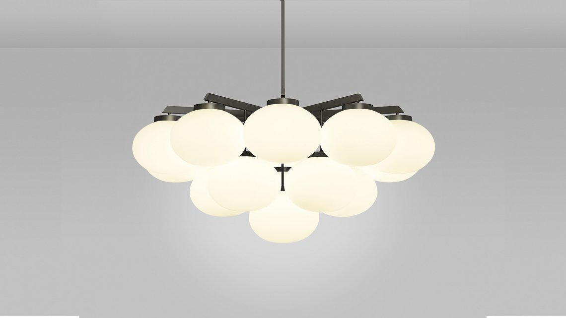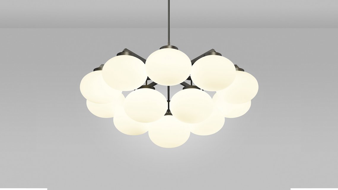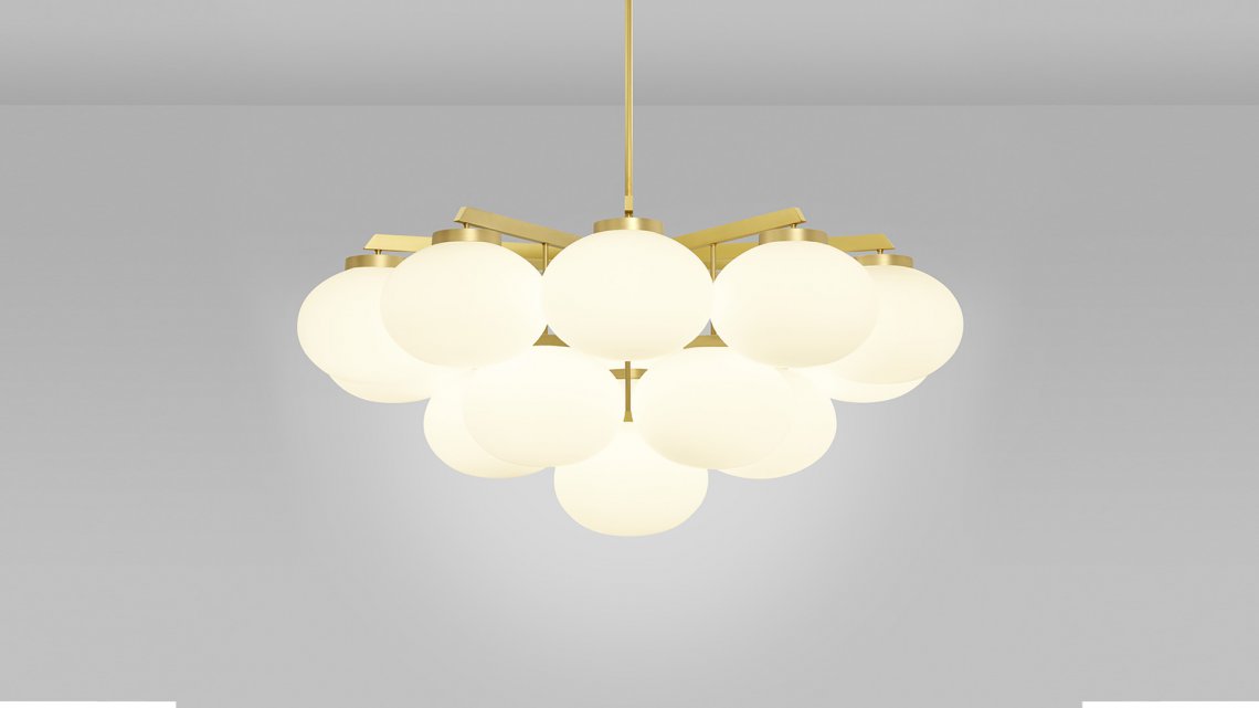 Sculptural and graceful, the CLOUDESLEY Chandelier is available in three sizes to suit a range of interiors. Opal glass shades are suspended in tiers by an expertly machined brass frame that is available in either a satin brass or bronze finish. The soft curves of these chandelier lights create a calming and heavenly atmosphere, ideal for adding a relaxed ambience to a bedroom or living area, and the circular form means it hangs perfectly above any round table.