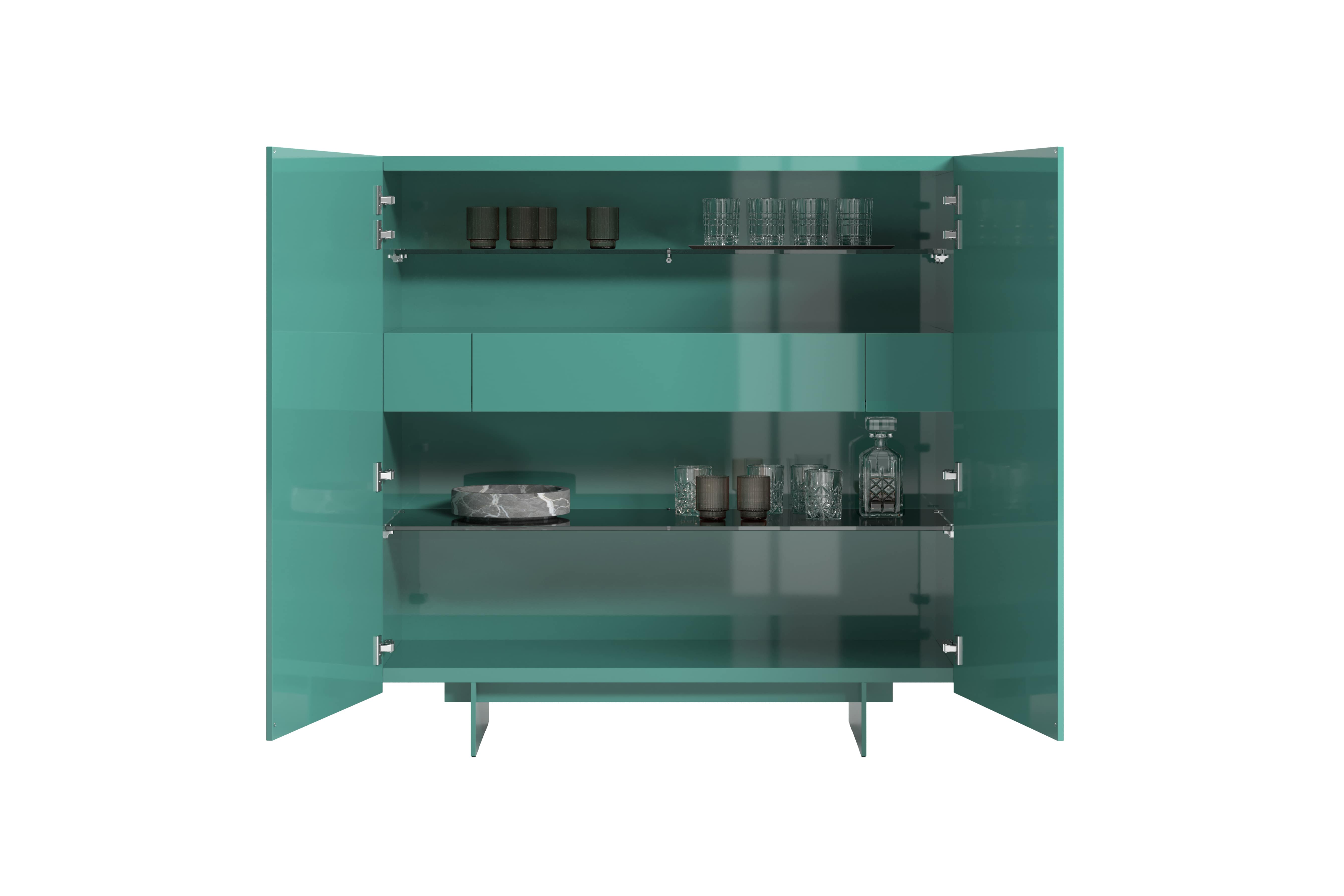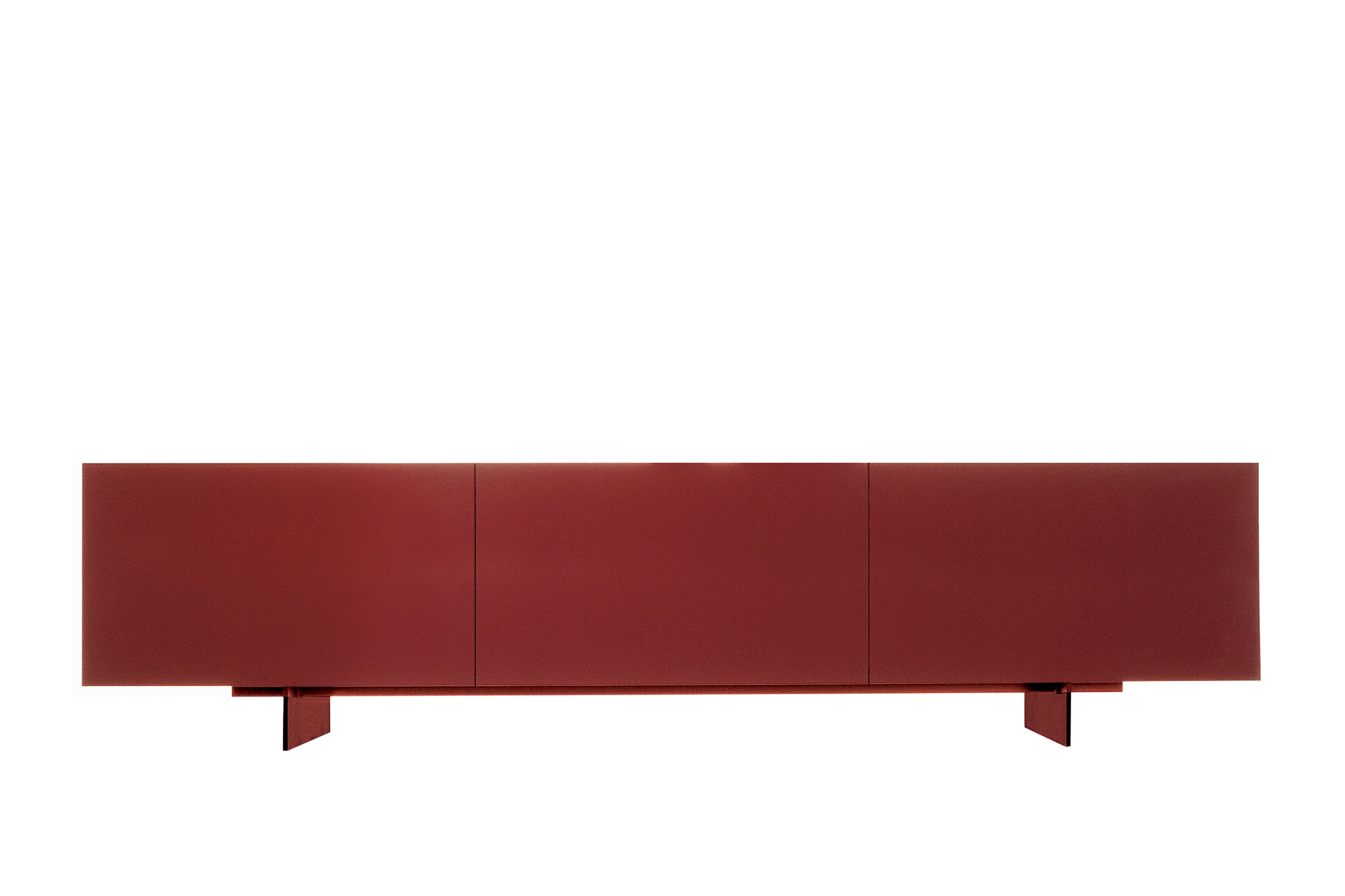 The Uni cabinet series by Piero Lissoni, defined by large volumes and an extremely geometric and rigorous design, further expands with the addition of two brand new wall-mounted models with three drawers or three leaf doors. For all models the structure is made of medium-density conglomerate wood, equipped with aluminium-lined poplar plywood hinged-doors and drawers, with minimum thickness. For the free-standing version, the base panels are made of thick laminate with a metal frame for support. All cabinets come with a matte or glossy finish in the colours of the collection.