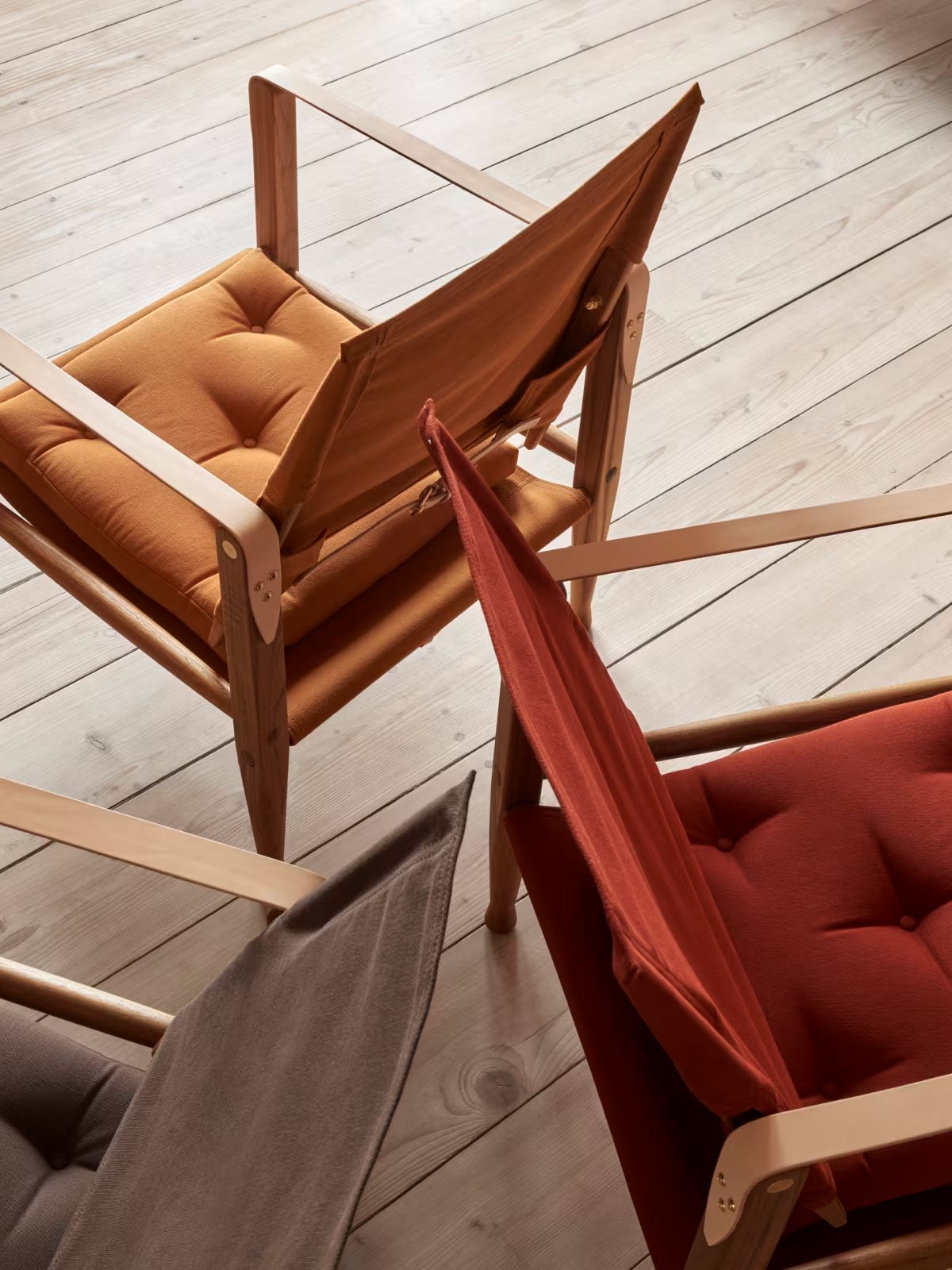 his special edition of the Safari Chair by Kaare Klint features a heavy canvas fabric available in three warm and earthy colours. Merged with soft saddle leather detailing and a vibrant oiled teak frame, this edition offers a new look to Klint’s masterpiece.