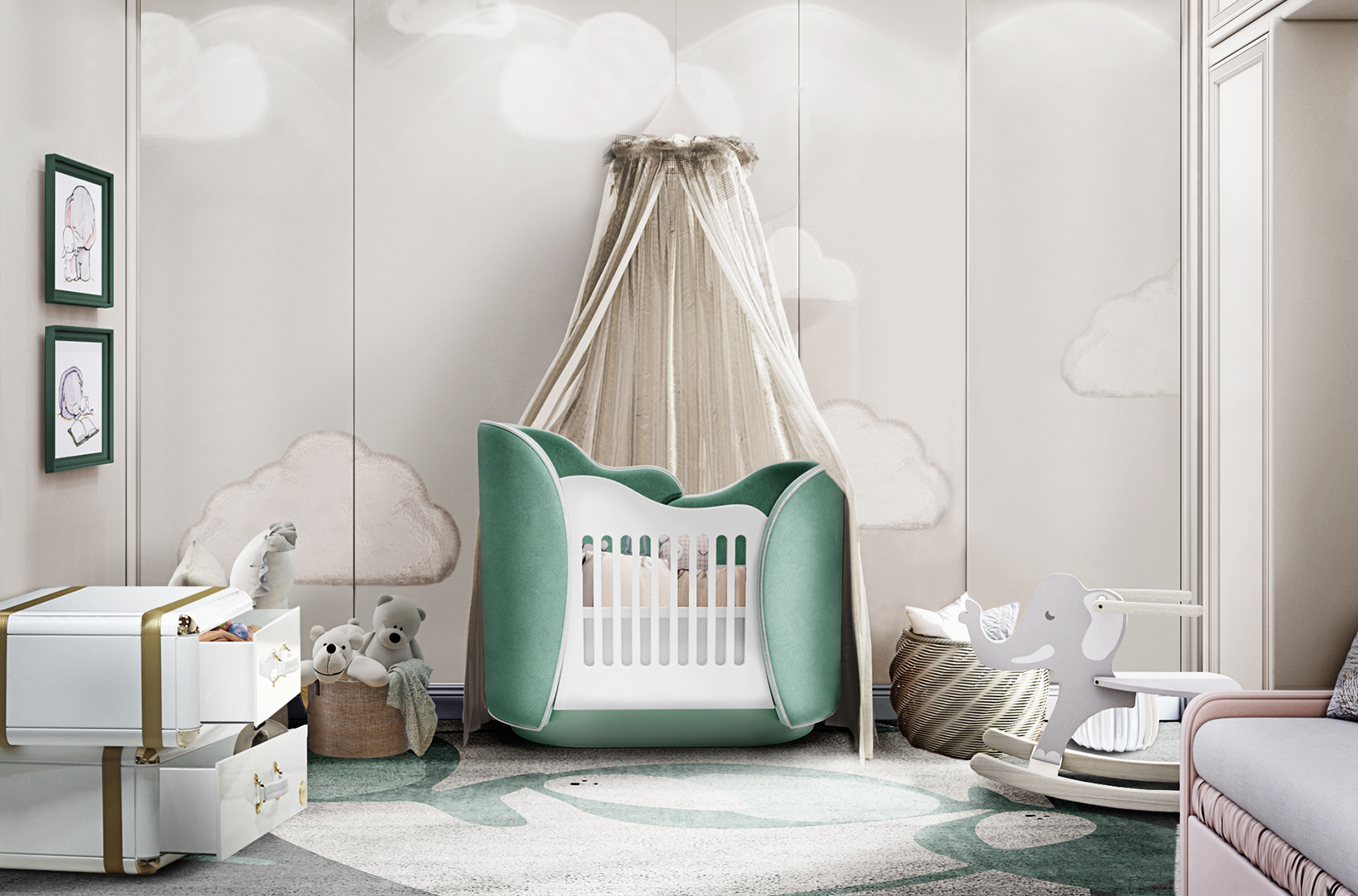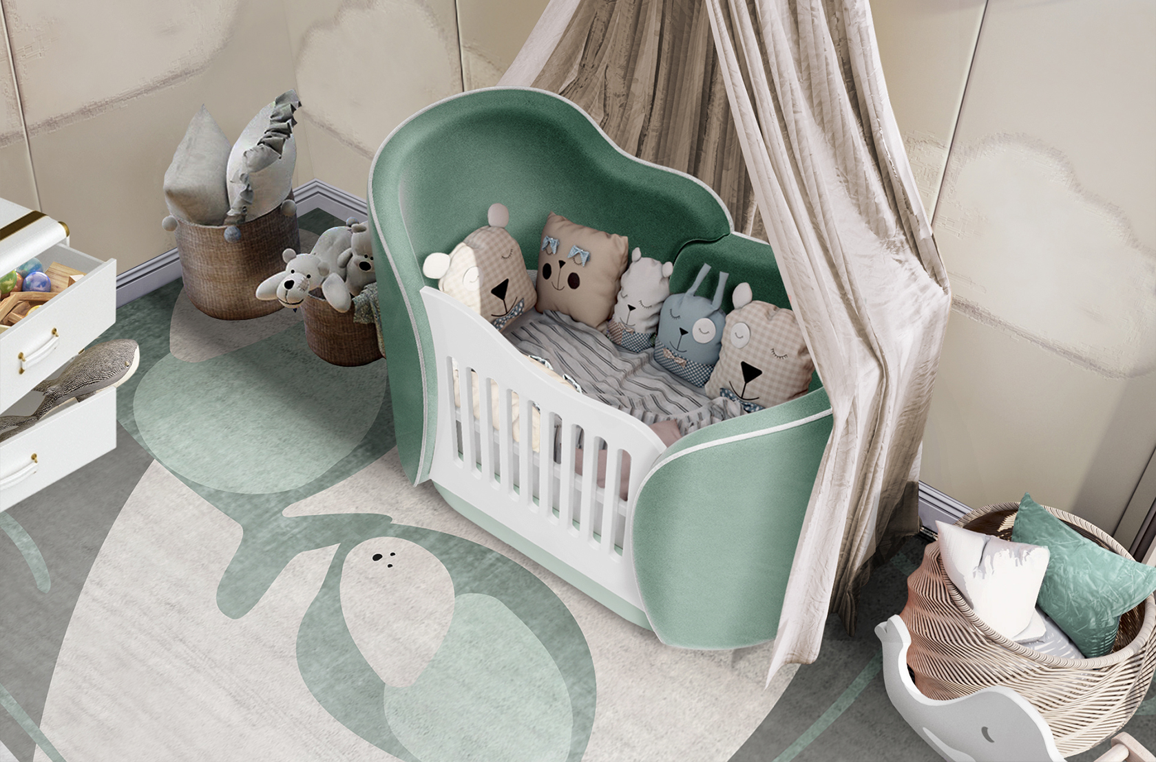 This cradle is the perfect piece for every baby (and parents) bedroom. Its cloud-shaped form is only one of the details that make this piece whimsical.