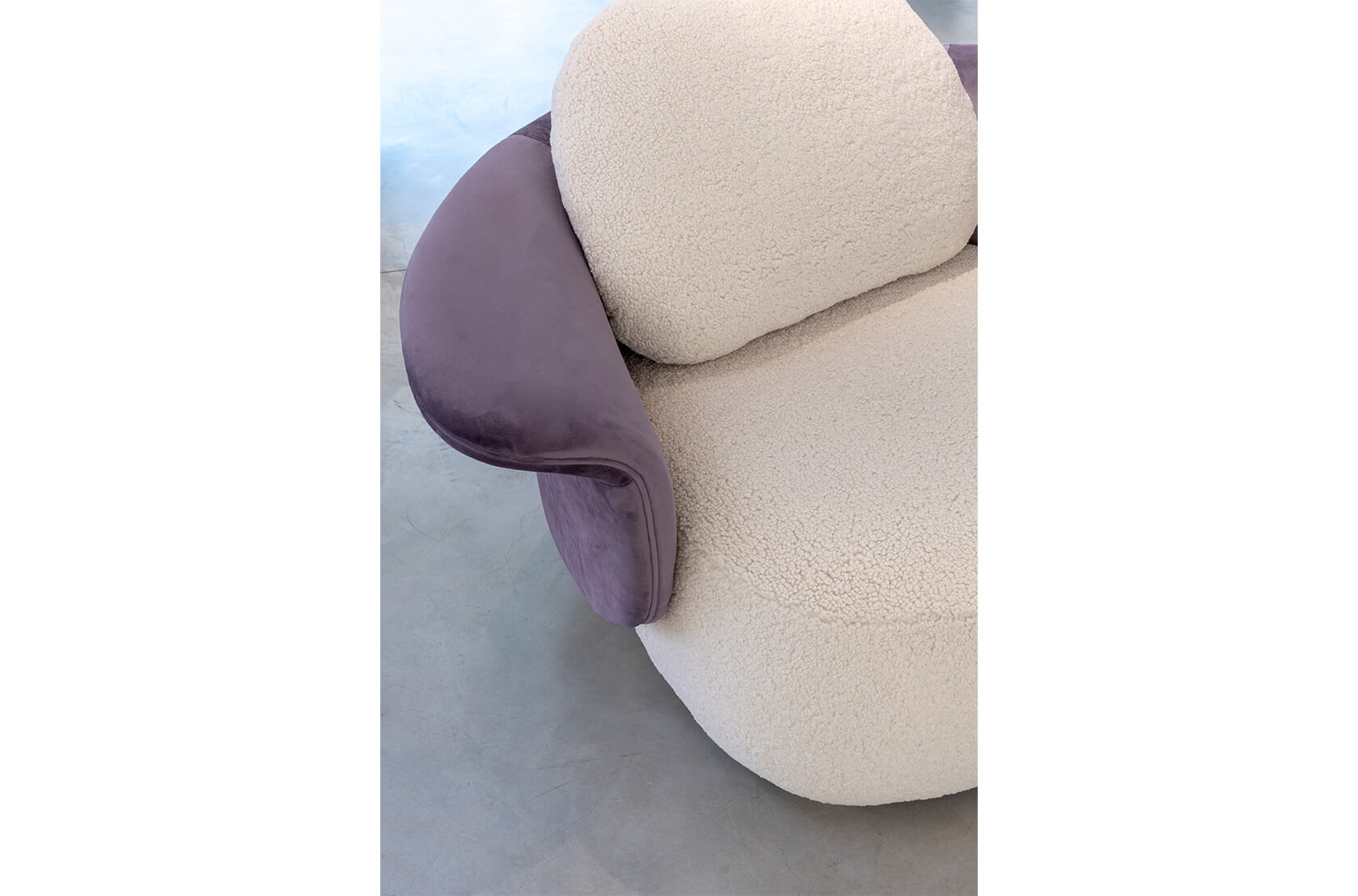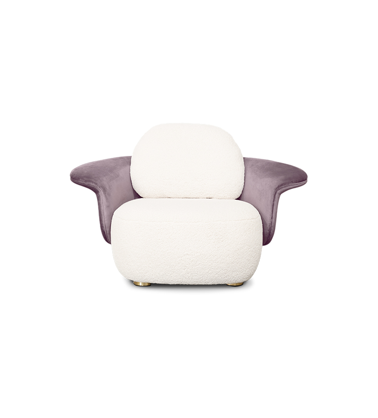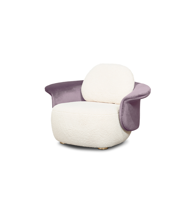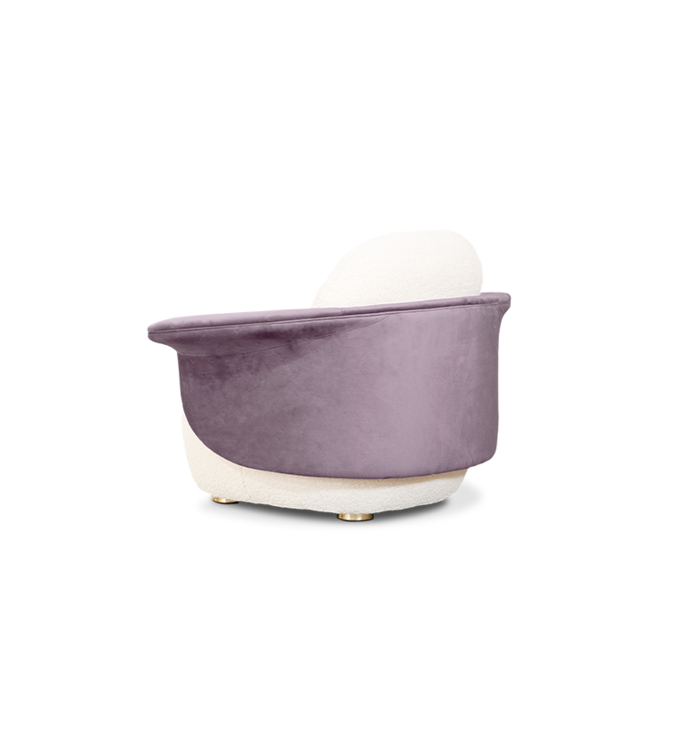 On the Isle of Lewis, the Callanish Standing Stones are one of Scotland's oldest and most magical monuments, and they inspired Merida's ring of stones in "Brave." Circu was inspired by this as well, and shaped this piece of upholstery to seem like rocks and natural formations. Lewis Armchair is a modern piece that employs fluidity to convey warmth and comfort by combining two very different fabrics: a soft boucle for the sitting and back, and a delicate velvet for the back frame. The golden plated feet provide a touch of elegance, as well as a sense of mystique and enchantment.