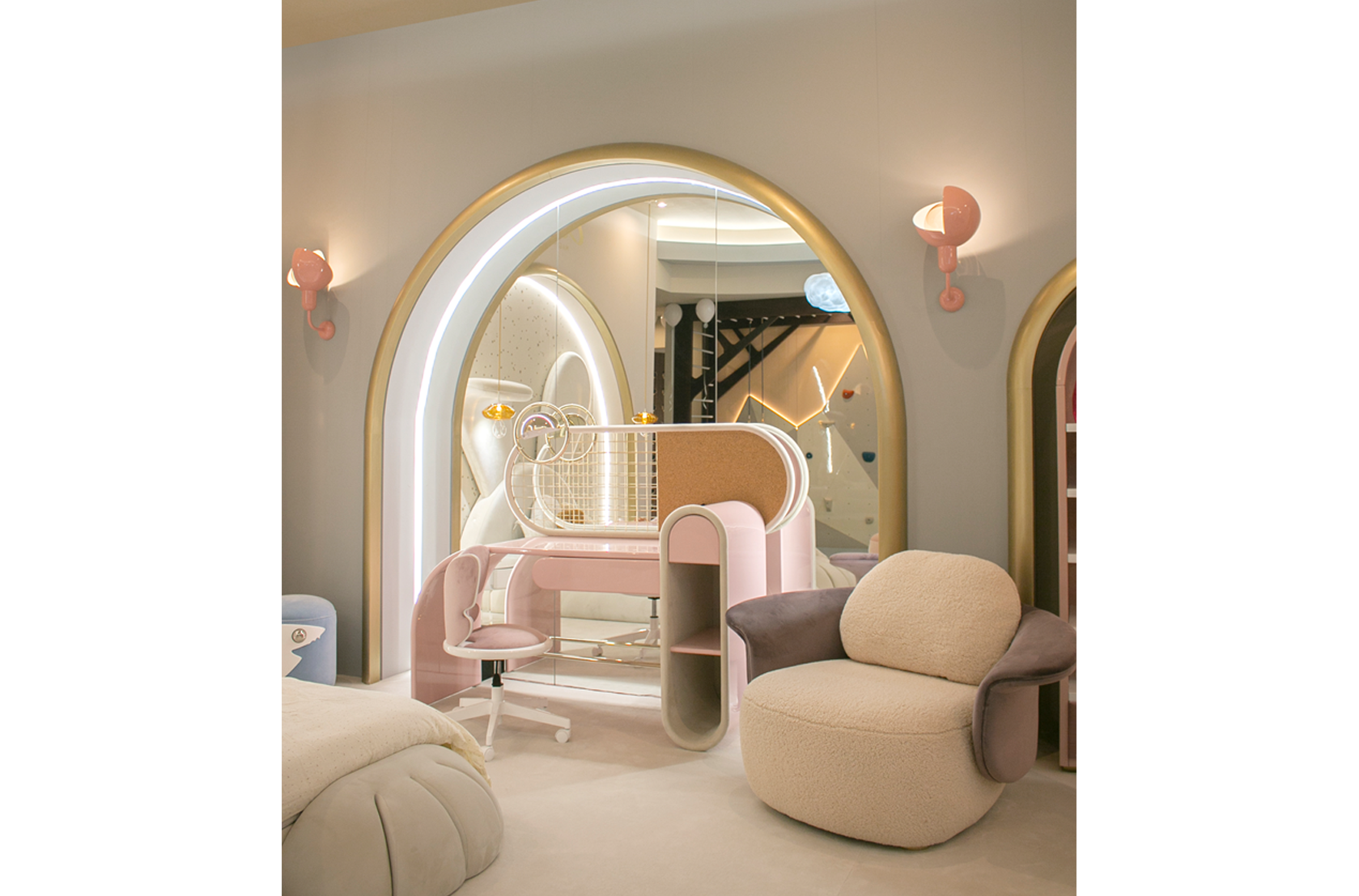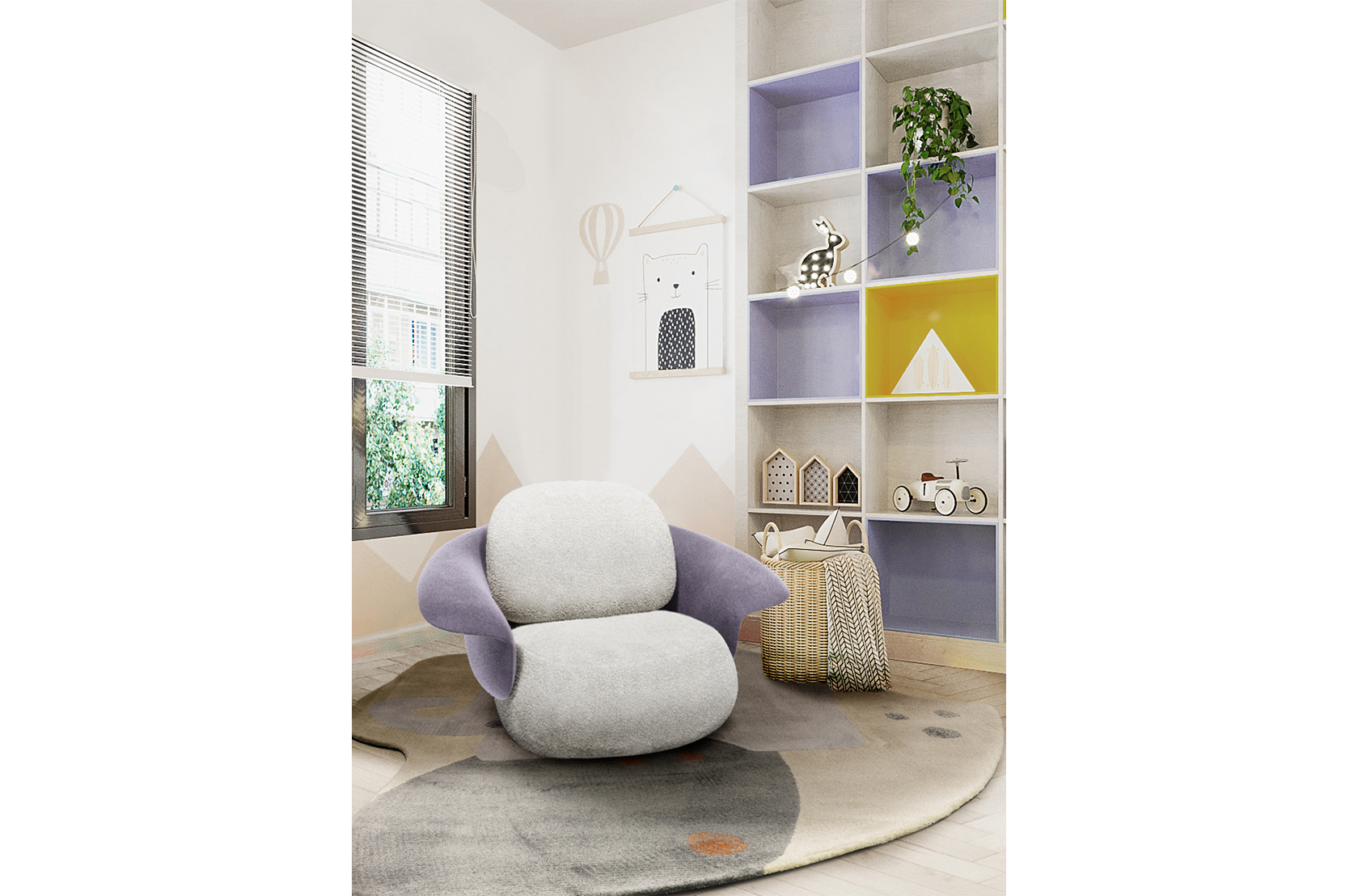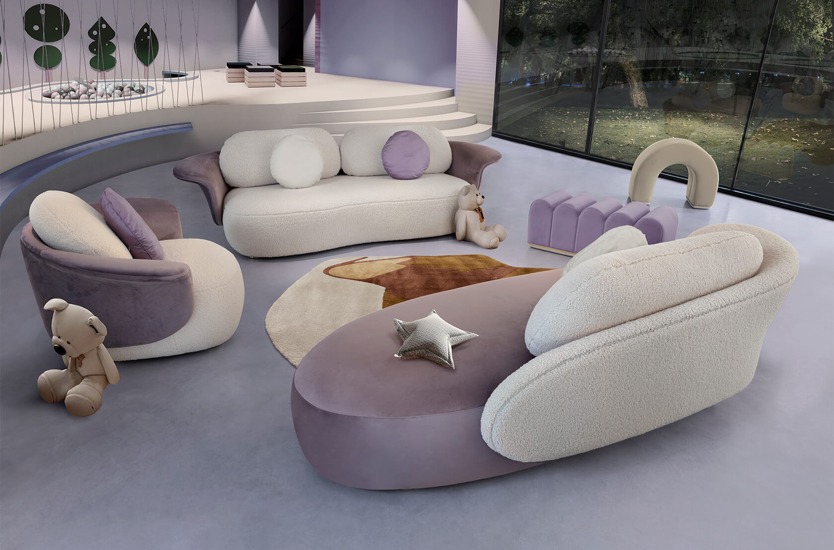 On the Isle of Lewis, the Callanish Standing Stones are one of Scotland's oldest and most magical monuments, and they inspired Merida's ring of stones in "Brave." Circu was inspired by this as well, and shaped this piece of upholstery to seem like rocks and natural formations. Lewis Armchair is a modern piece that employs fluidity to convey warmth and comfort by combining two very different fabrics: a soft boucle for the sitting and back, and a delicate velvet for the back frame. The golden plated feet provide a touch of elegance, as well as a sense of mystique and enchantment.