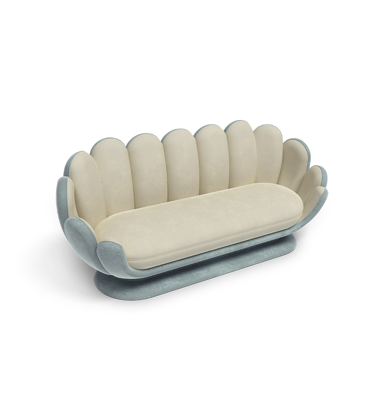 The divine Lotus flower extends its seating reign, through a modern and super comfy sofa version. With a contemporary touch and fully upholstered in velvet, it is the ideal piece to gather friends, whether for playing or studying, as it also serves as a cozy reading corner.