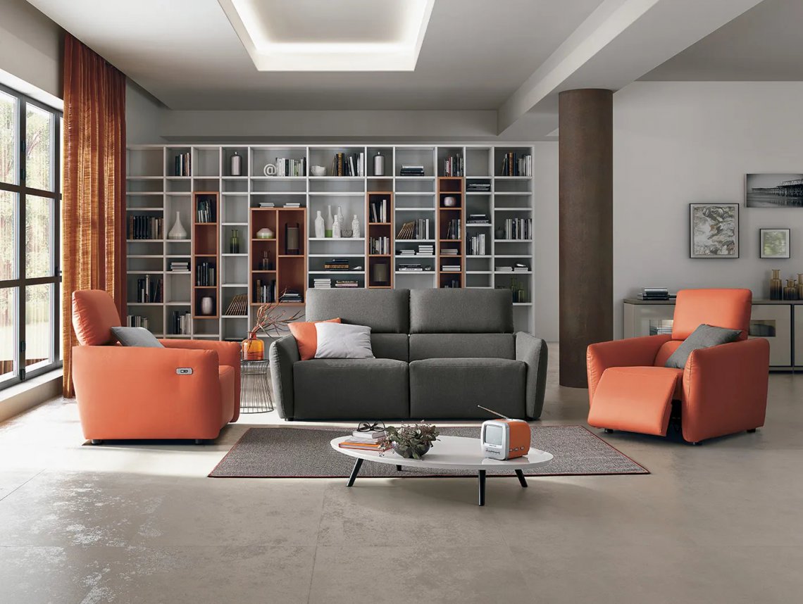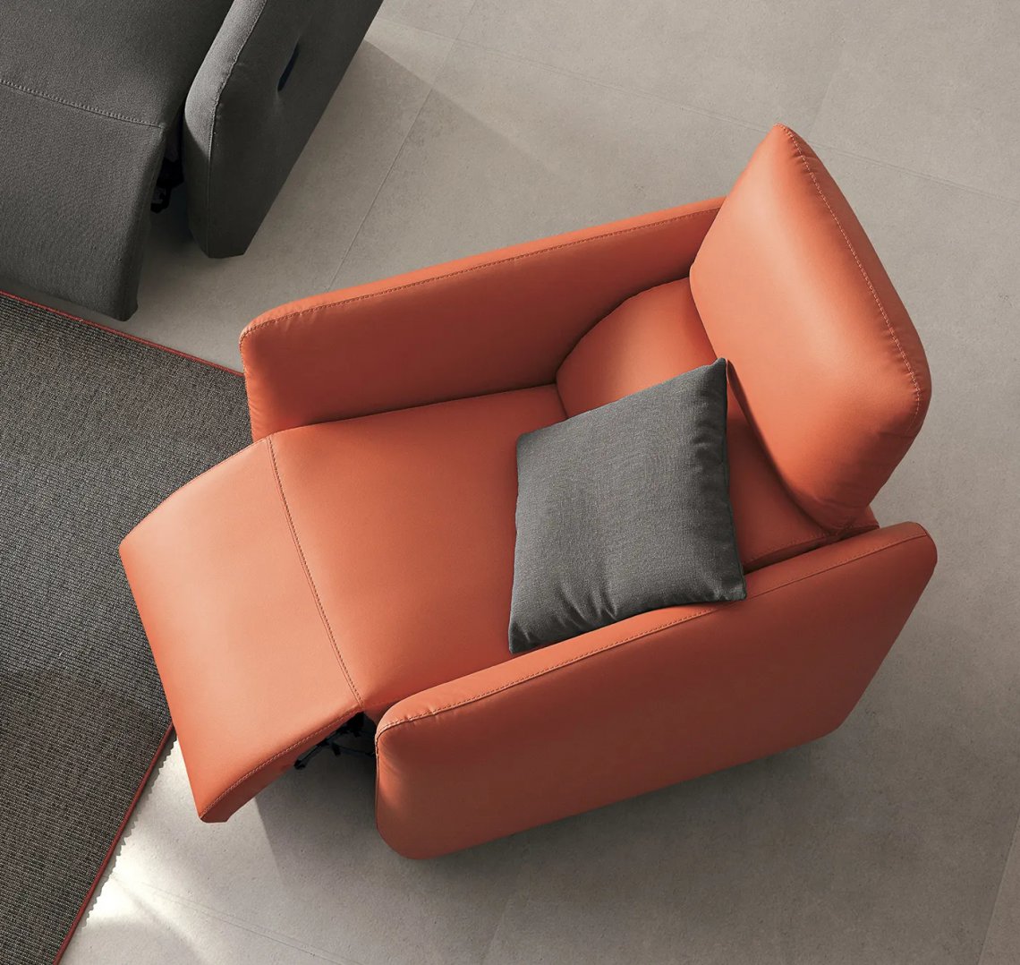Comfort has a new shape, with TRUMAN: integrated USB socket to recharge phone and tablet, manual and electric recliner of backrests and footrests, slender and slim silhouette to be inserted even in the smallest spaces.