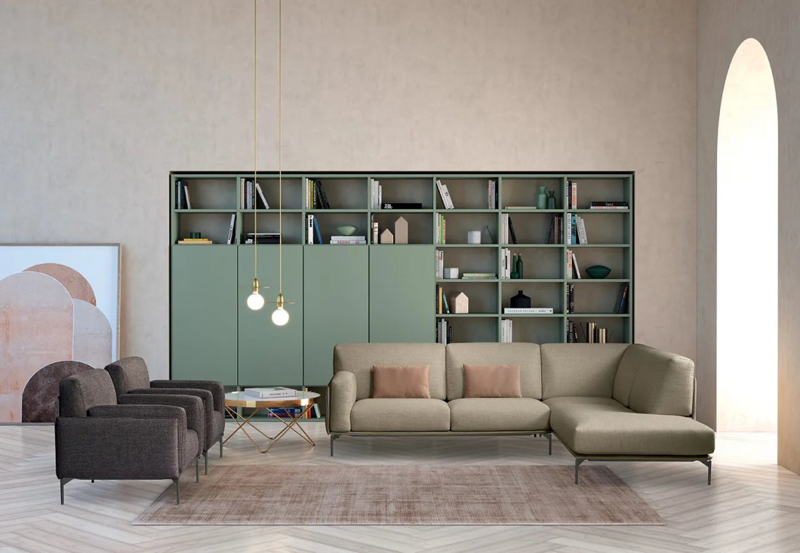 In its stylistic canons we find a timeless elegance characterised by the versatility of the shapes: the different combinations of armrest and backrest possible, making every style choice unique.