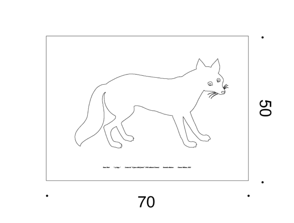 The animal subjects of the “La Serie della Natura” derive from the iconographic research that Mari developed at the beginning of the ‘60s for the definition of the characters of the “Gioco delle Favole”. A lengthy study was dedicated to each subject to achieve an emblematic result that makes an alphabet of institutionalised signs decipherable. The re-edition of the prints of Enzo Mari’s iconic subjects therefore continues with three subjects taken from this project and already created as independent prints.
