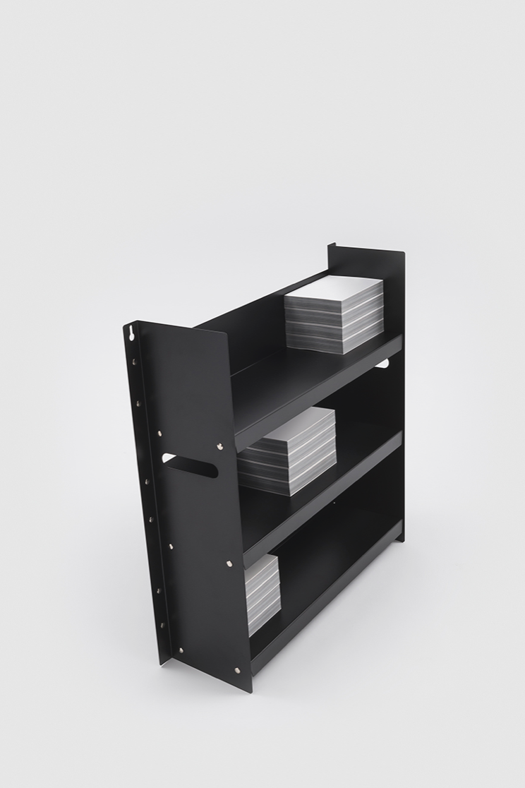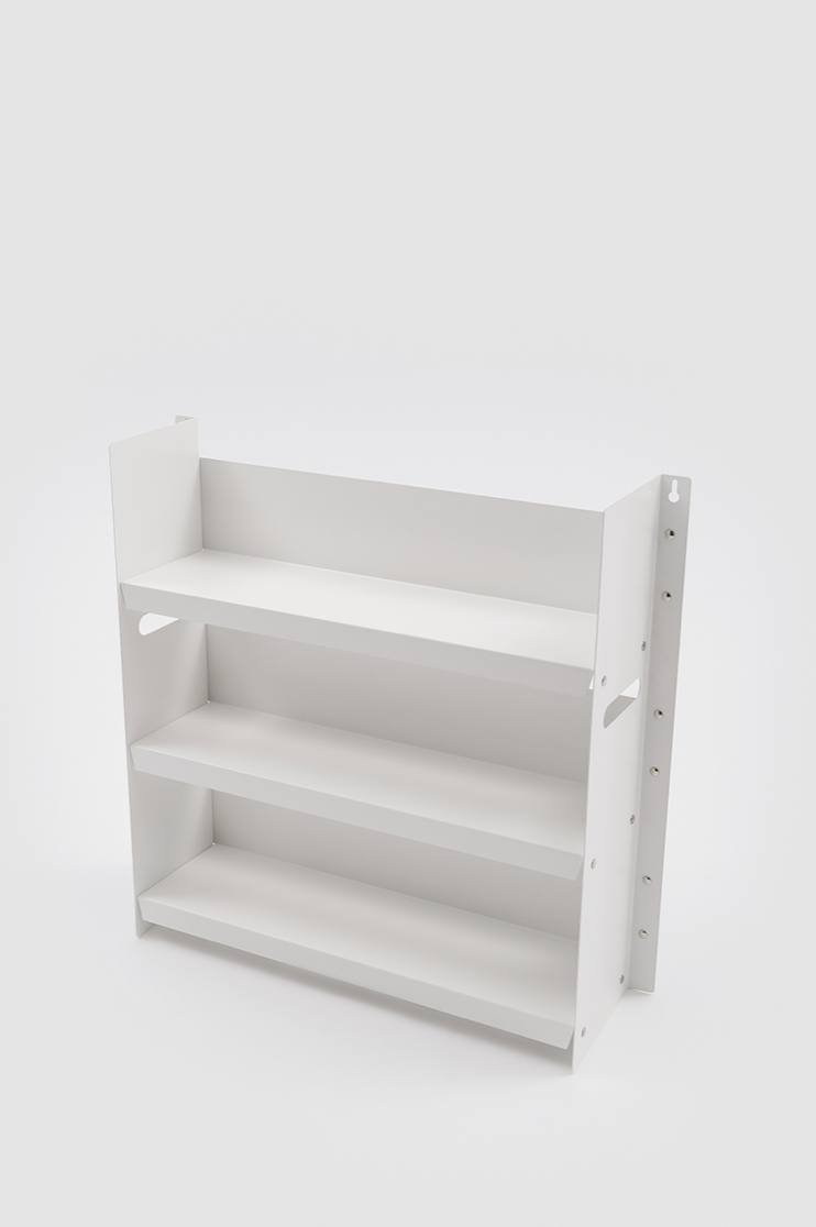 Livorno 60 is a small bookcase with three shelves made in powder-coated metal. The design of the piece is minimal and is characterized by the simplicity of the form and materials used.