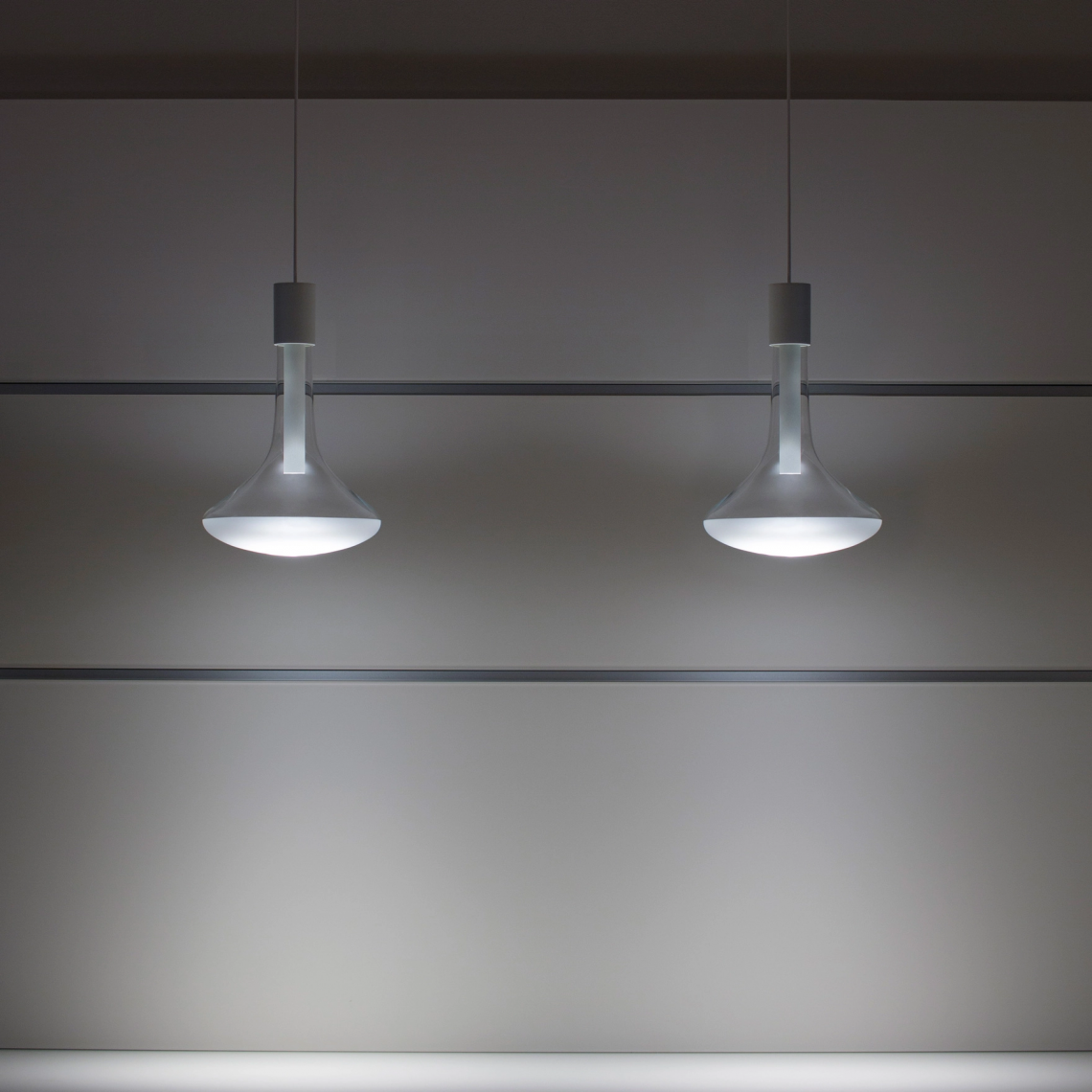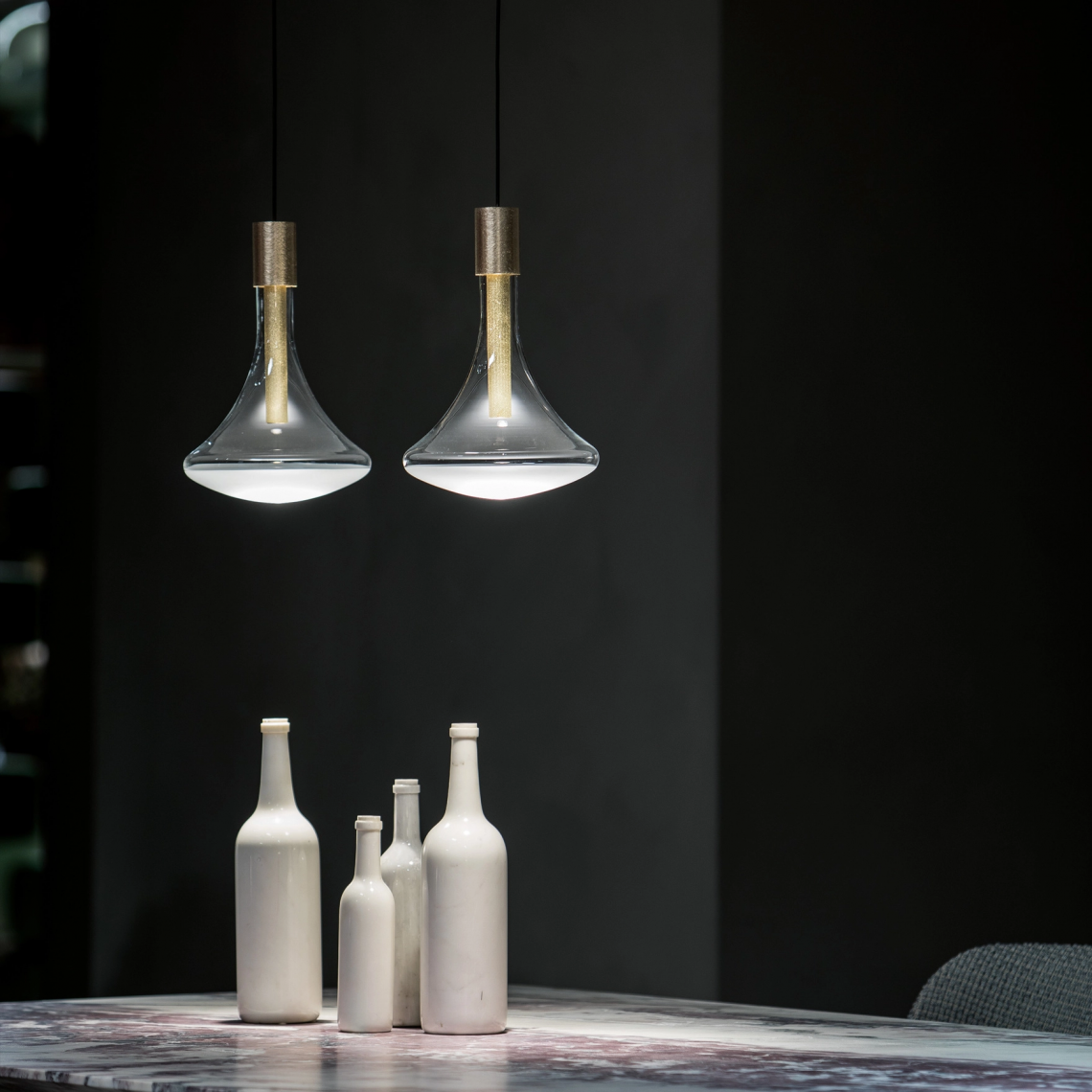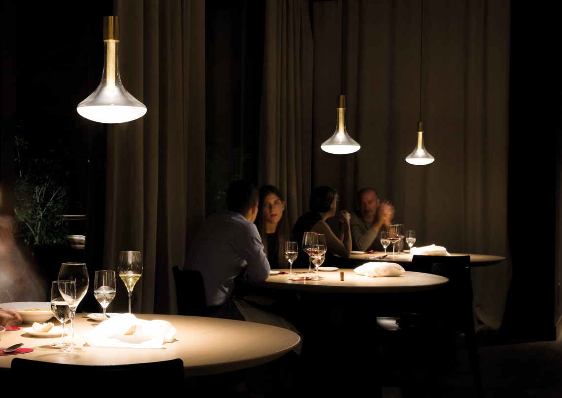 The shape brings to mind a light bulb that was never born. Think steampunk: situations in which instruments were inspired by the rudiments of electricity. The classic light bulb that has no future becomes a wonderful device made of luminous diodes. What would the past have looked like if the future had arrived first?