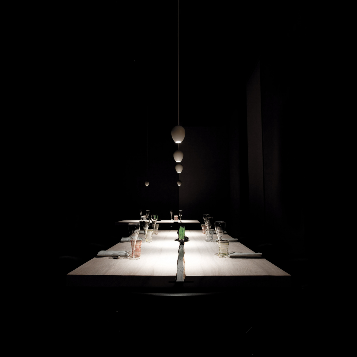 Light as an ingredient, used courteously but at the same time decisively, on the tables, at the doorway and in the aisles. Starting from the idea that the egg is one of the fundamental components of the kitchen.