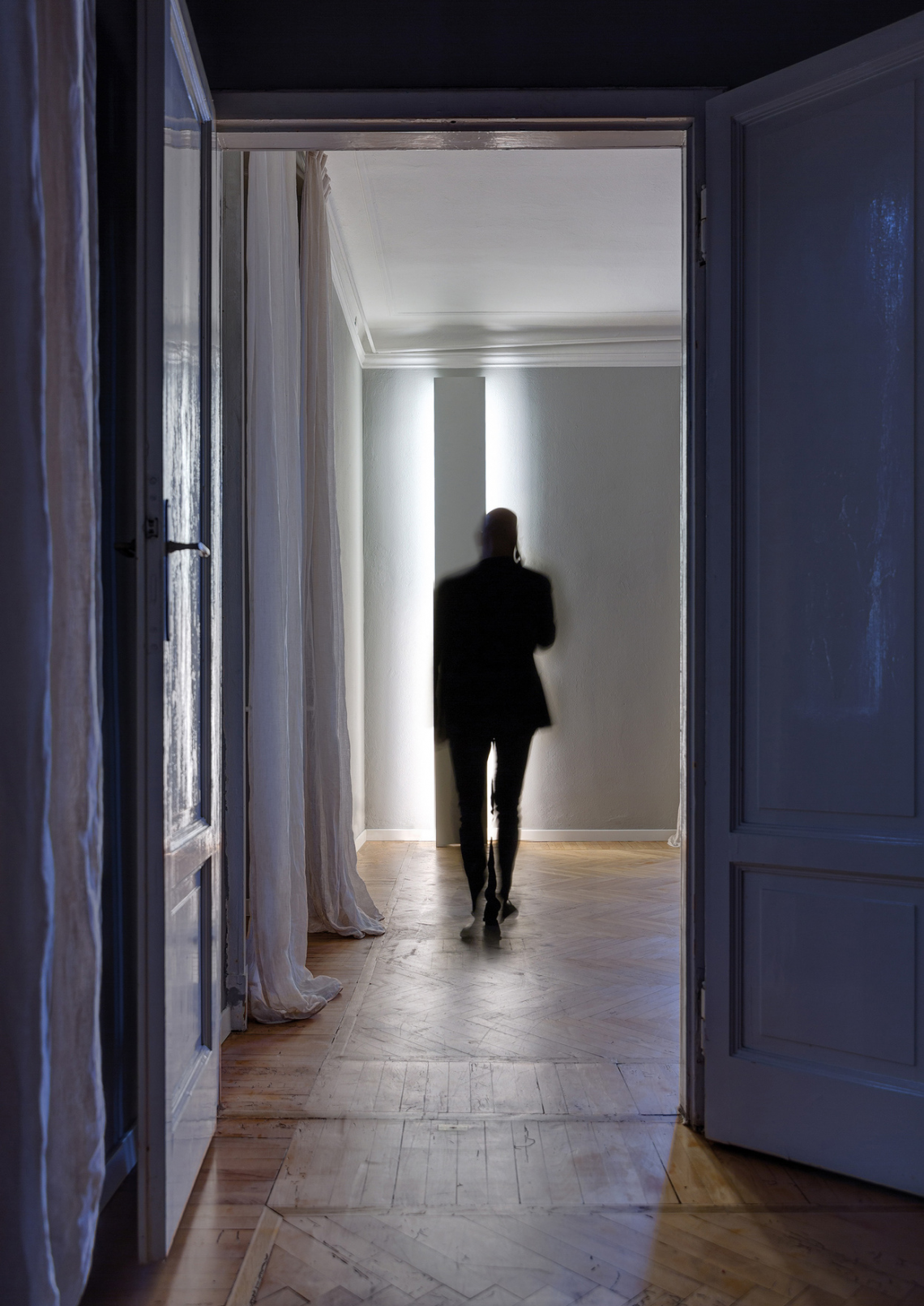 The lamp is fixed to the wall, but is powered by a cable and normal electrical plug. It just needs a wall socket nearby. Banner is one of our many solutions for bringing light where you need it, with the greatest freedom.