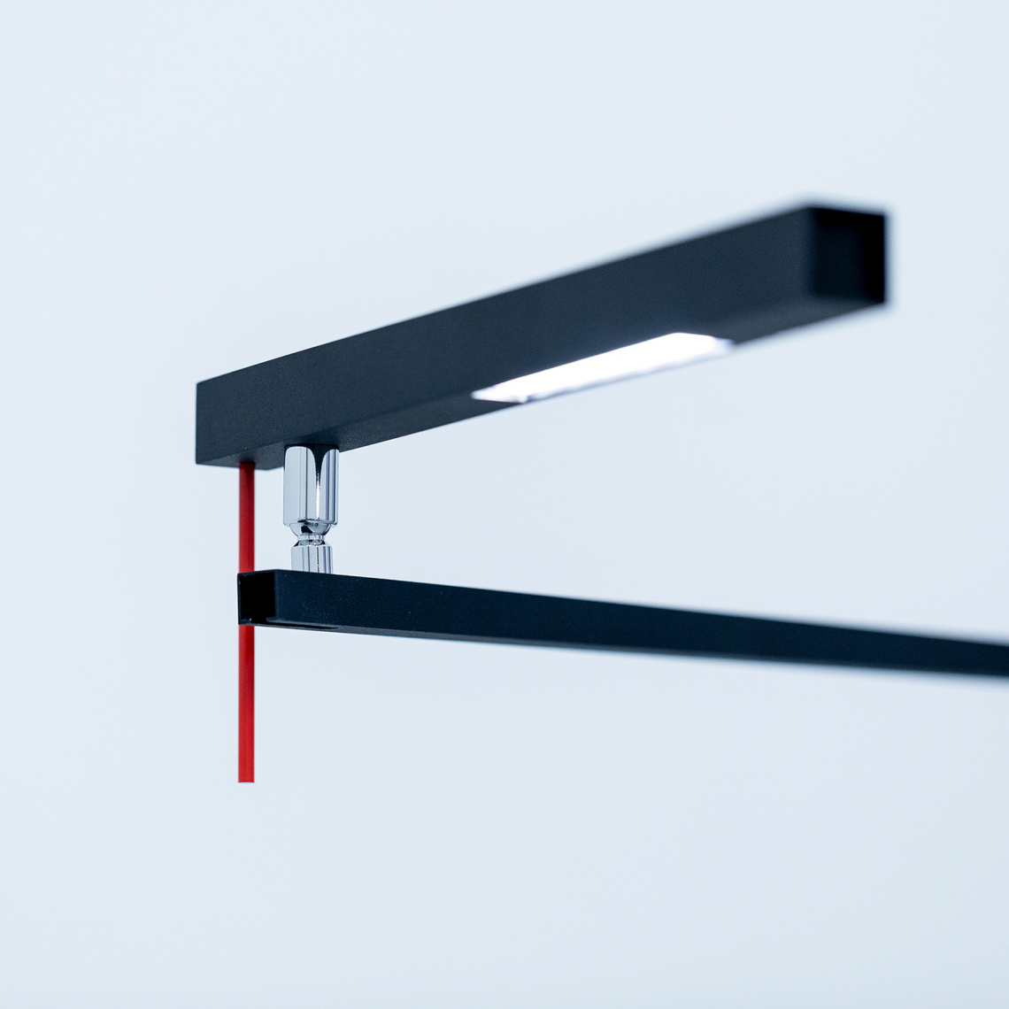 It's the wall version of the Morsetto lamp. A wall lamp, but at the same time very lightweight, suspended light. Three adjustable arms allow the light source to be positioned far from where the lamp is attached.