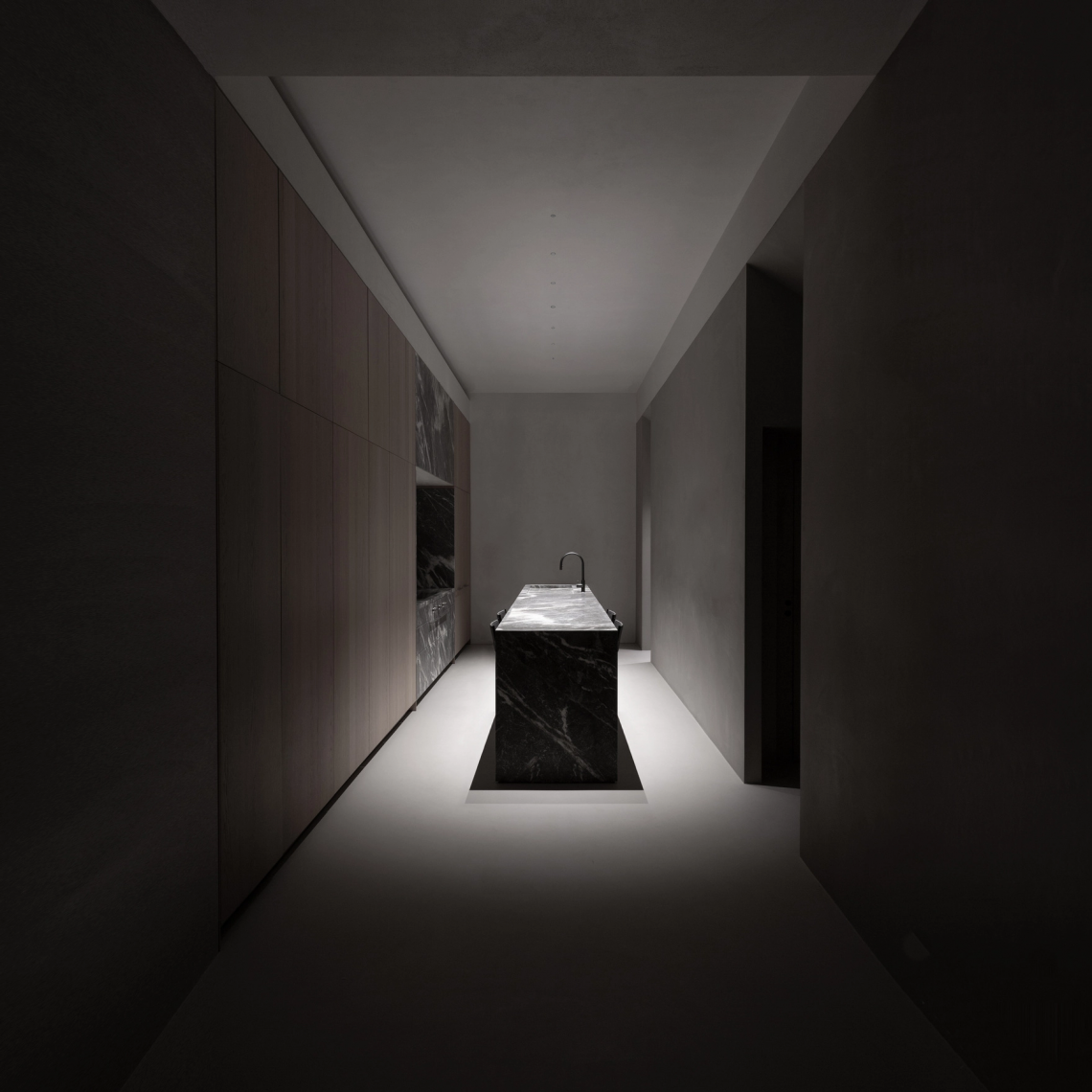 It’s the beginning, in the sense that we have always been looking for absolute light, one coming from a distance, almost without a source. It’s the end in that every time we look at Nulla, we feel as though we can’t get it better than that. Nulla generates light and propagates mystery. Nulla is the most generous of our lamps. Its sole objective is to hide and give all the attention to whatever it is lighting. What we see is only a tiny black hole, as if it were drawn on the ceiling.