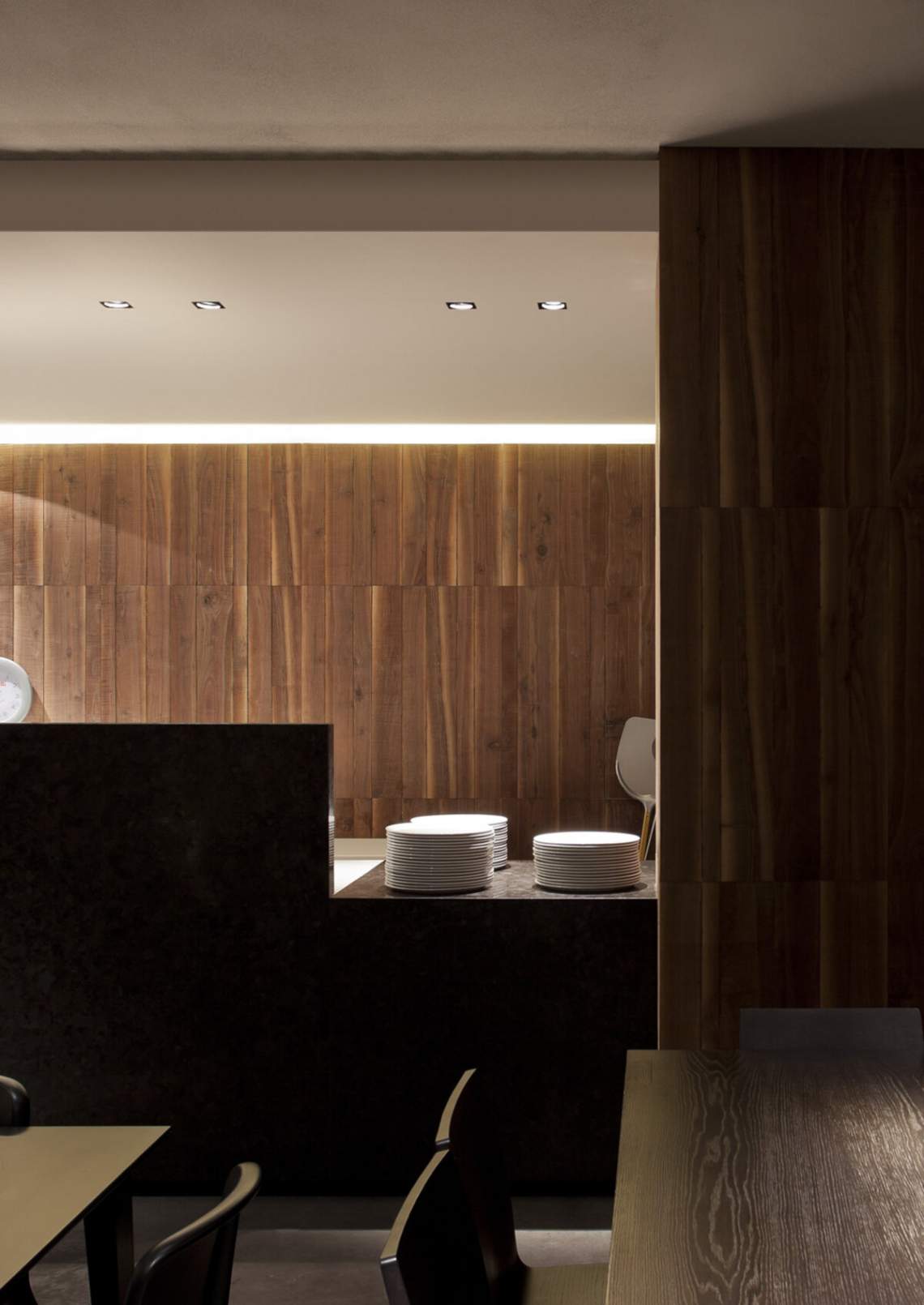 The luminaire is pure form, a simple container for the light source. Light is incorporated into the space, becoming an architectural element.