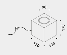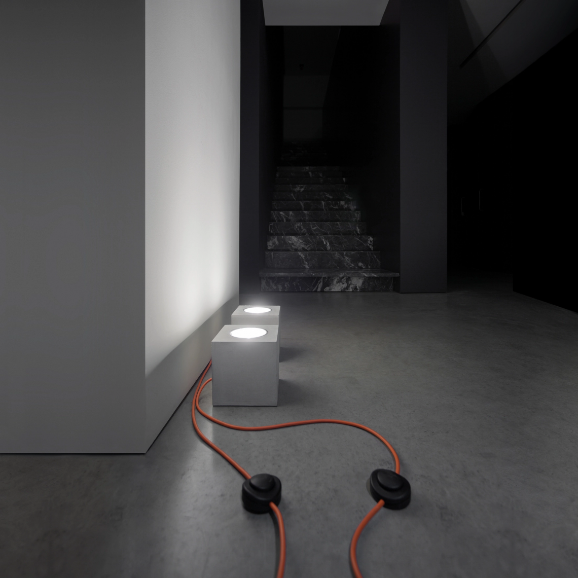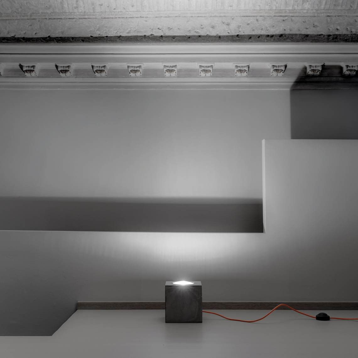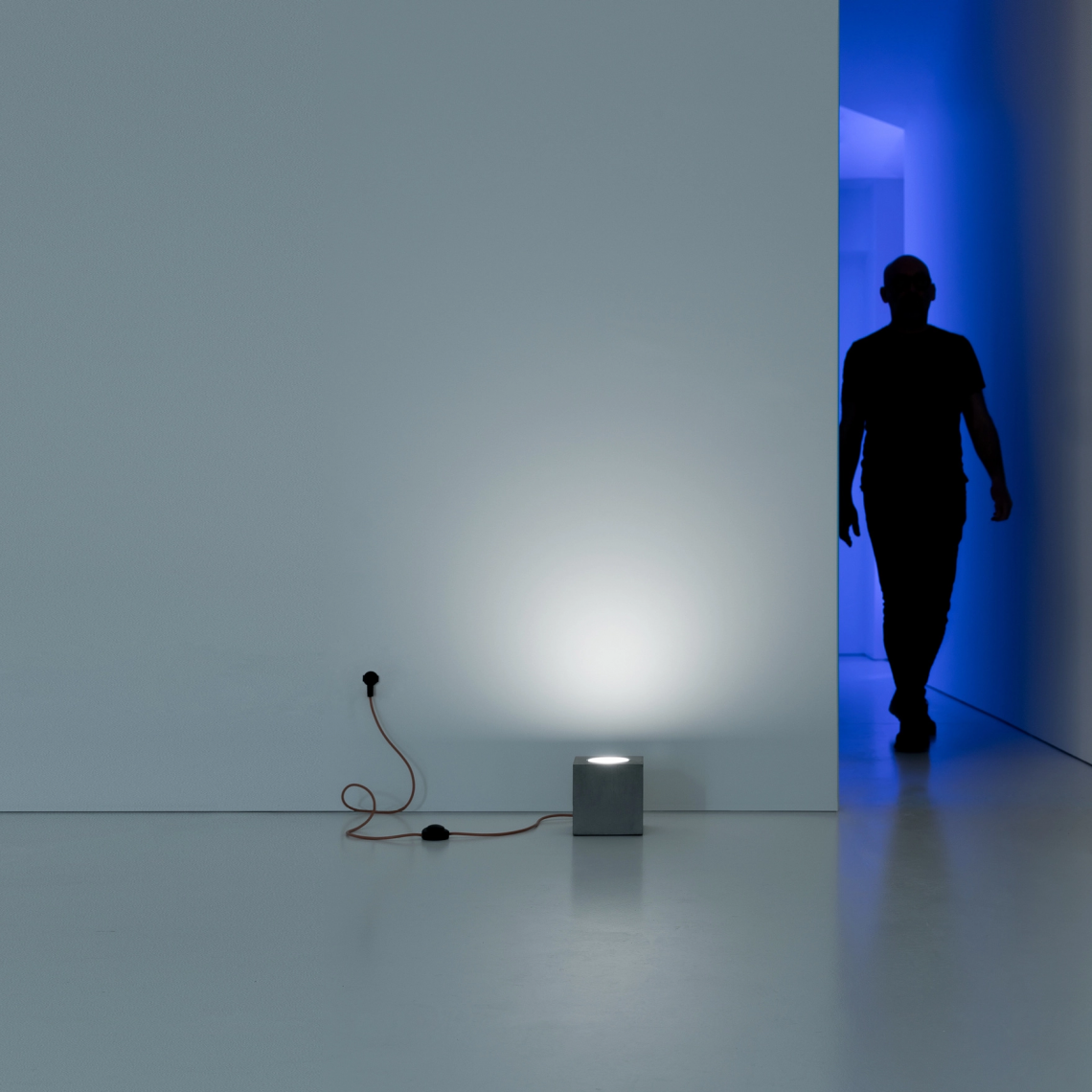 A concrete cube measuring 17 cm per side, with a built-in projector in one side. The light from the ground upwards allows you to understand volumes and architecture in an unusual and sometimes unprecedented way.