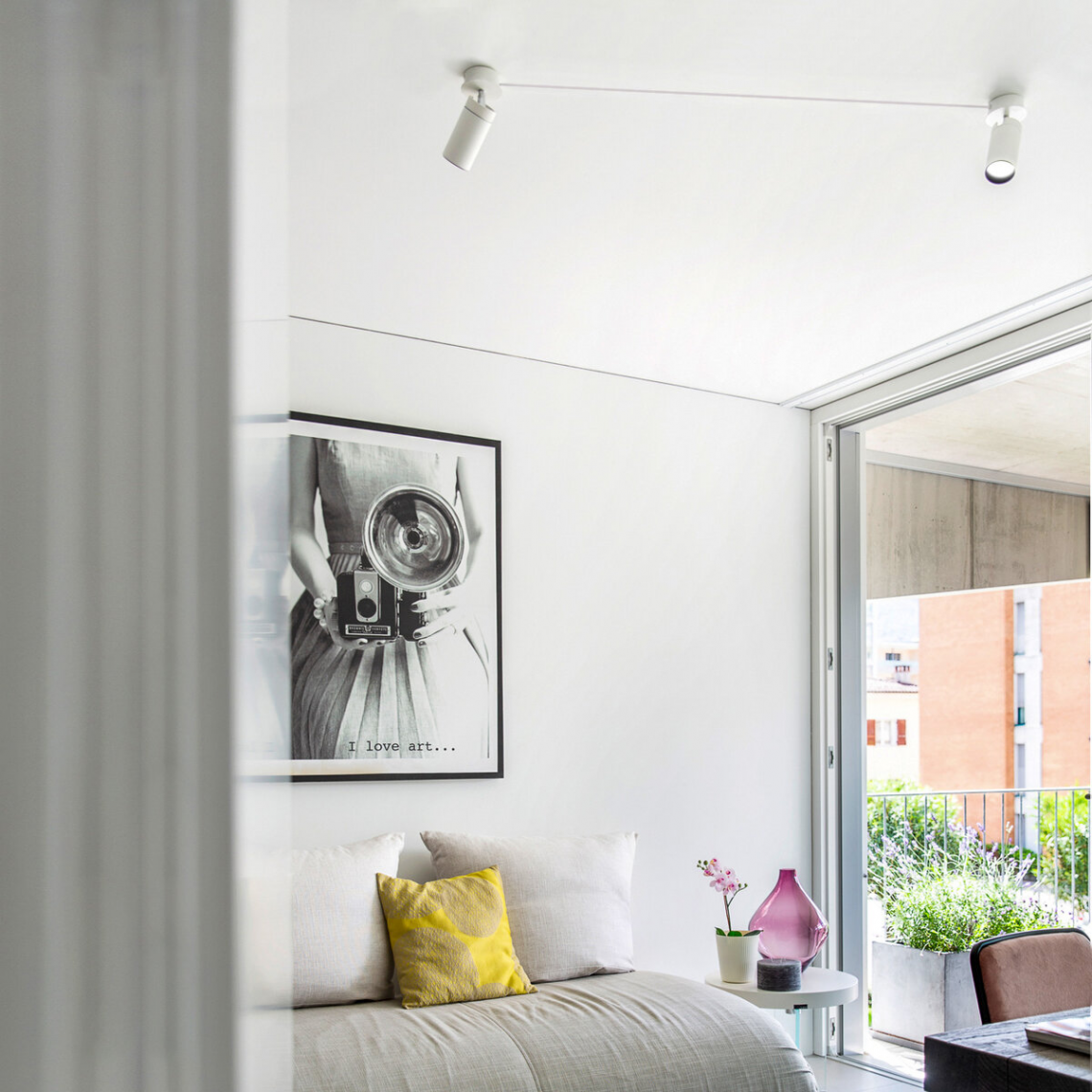 A simple, graphic solution bringing accent lighting with an external wiring system.