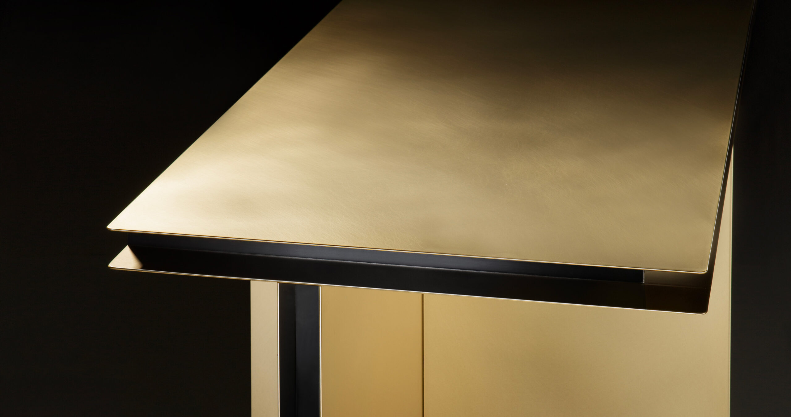 Una presenza scenica tanto semplice quanto audace definisce la consolle Folio, realizzata con lastre di metallo in spessore poste su piani paralleli, esclusivo linguaggio progettuale per definire sia il basamento che il top. Un segno grafico e tridimensionale a “T” si delinea sulla lastra di fondo creando un volume compatto e preciso, dove i pieni e i vuoti giocano con massima eleganza. Ideale per arredare e creare un piano d’appoggio anche in luoghi stretti come ingressi e corridoi, trova sua naturale applicazione anche in contesti retail, hospitality e contract.