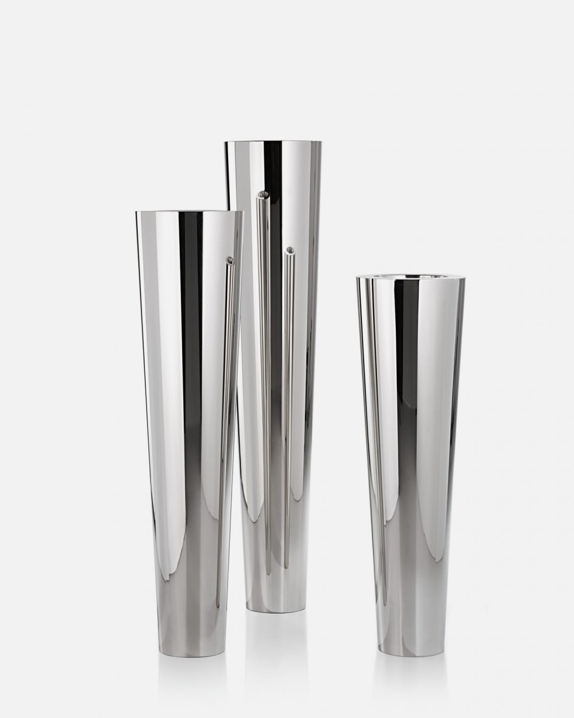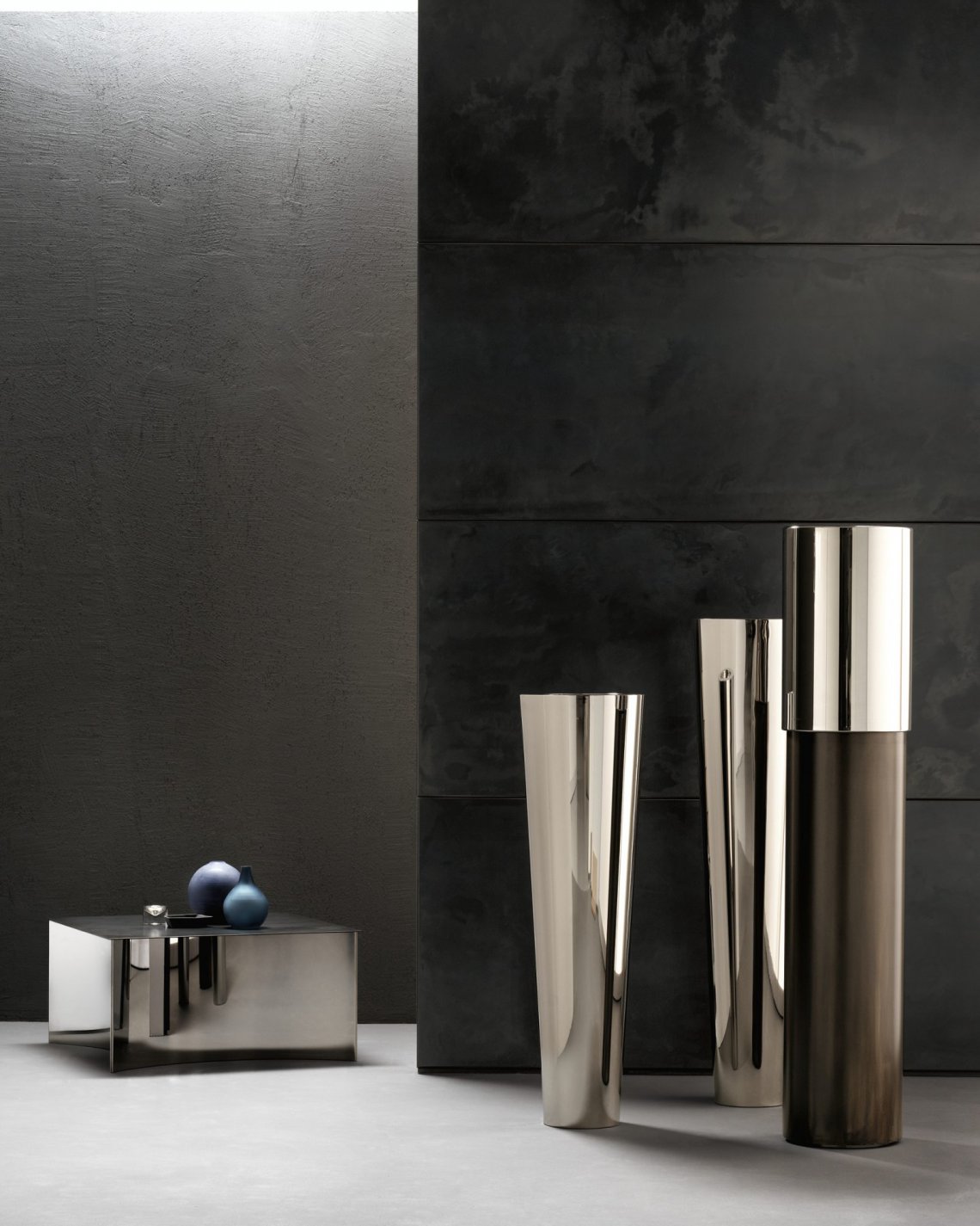 A cachepot in ascending heights, all with one single diameter. Five different proportions to explore a shape generally associated with vases, to be positioned freely or affixed to the ground. The towering lines of the large-scale versions are naturally imposing, becoming a building within a building, defining the space and its paths. Destined both for indoor and outdoor use, Narnya brings unmistakeable De Castelli finishes to domestic spaces or, in the lacquered version, blends in with its surroundings.
