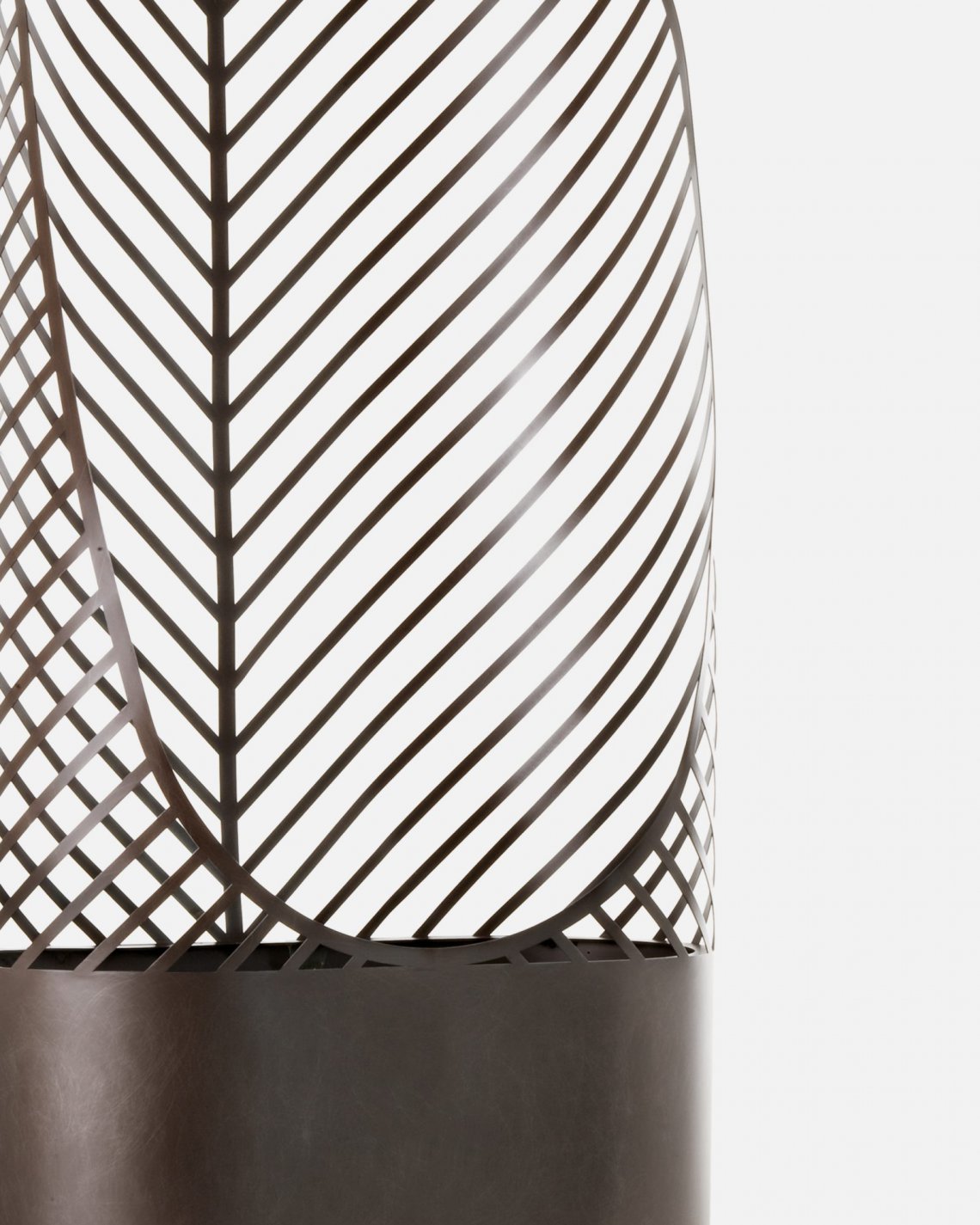 Screen-Pot is a contemporary take on the classic flower pot with a trellis for climbing vines. Its design was inspired by the shapes of nature itself: like a leaf among leaves, the trellis softly closes in on itself to embrace the plant. It can also act as a partition to create mobile plant dividers, natural screens that offer privacy and protection from the wind.