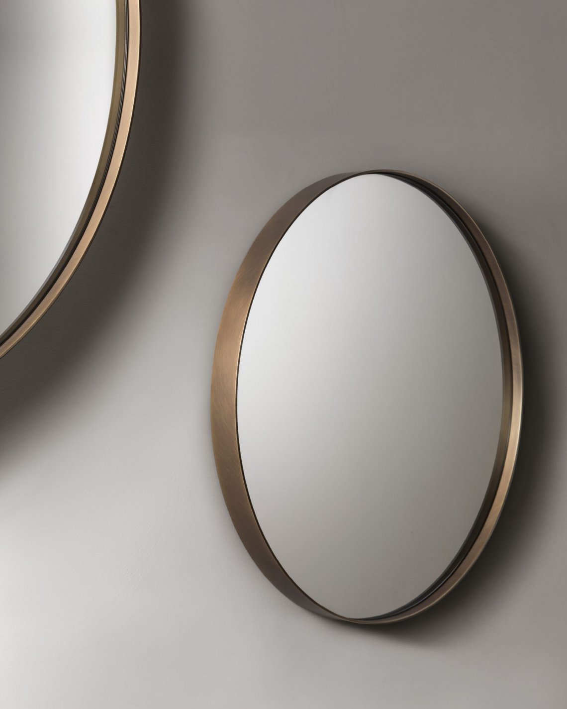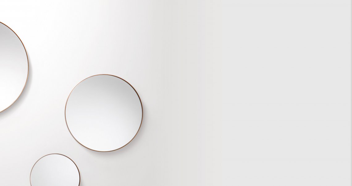 A collection of wall-mounted mirrors that celebrates the virtues of simplicity. Characterized by the essential, complete form of the circle, Riflesso is distinguished by the thick brass and iron frames that outline its reflective surfaces, delimiting rings of different sizes to hang alone or in groups. Versatile pieces perfectly suited to the contemporary nature of domestic living, these decorative items combine the richness of De Castelli finishes with the extreme essentialism of its shapes.