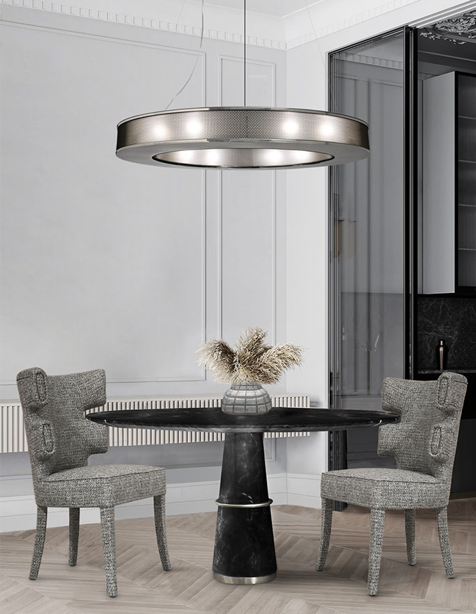 With a modern design, Marcus suspension has a delicate aftermath for a well-lit home. A customizable piece, this modern lighting design fits in any modern style home decor, suited for the most exquisite rooms. A clean cut look with a timeless aesthetic, this modern suspension lamp is the suited one for a contemporary style decor as well as a modern lobby hotel design.