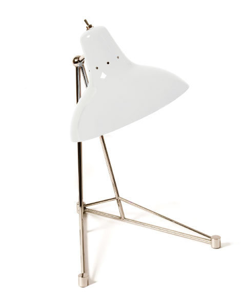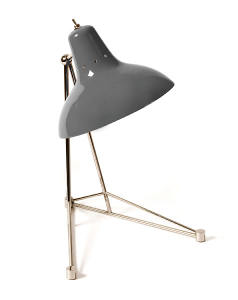 Diana is a vintage table lamp inspired by some of the greatest design classics of the mid-century era. It is a handmade lamp built with materials such as brass and aluminum. Brass was used on the body, whilst aluminum was chosen for the shade. The aluminum shade is lacquered a glossy red on the outside and matte white on the inside, while for the body a nickel-plated finish was chosen. However, both these colors and finishes can be customized according to your needs. This small lamp is easily the perfect reading light, having a movable and adjustable shade, that casts light to where it is needed. It best fits more minimalist or industrial environments. The perfect study table lamp.