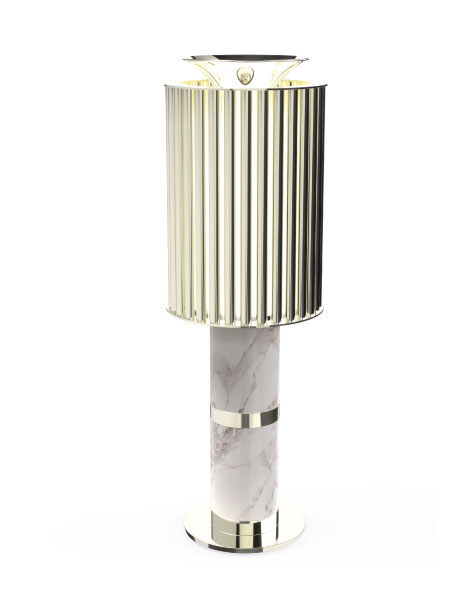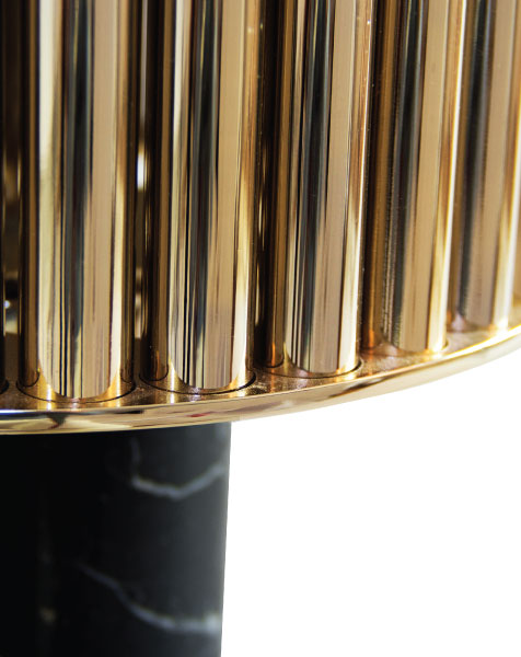 A majestic tall table lamp, Donna has come to redefine everything we have ever seen in the lighting design world. Almost 28 inches high, this brass desk lamp is much more than that. Handmade in brass and Estremoz marble, both the body and the shade received a gold-plated finish in order to emphasize its luxurious characteristics. Probably DelightFULL’s most exclusive design, this gold desk lamp features elegant handmade details all around the shade, giving it a Hollywood glamorous feeling. With an exquisite design, it suits any classic entryway or dining room. It is also the perfect table lamp for living room environments.