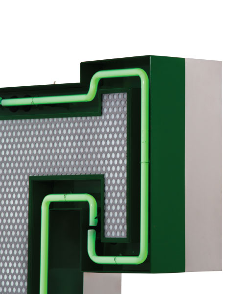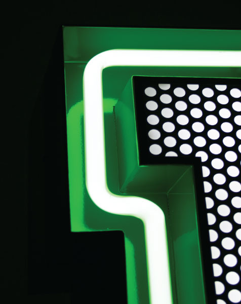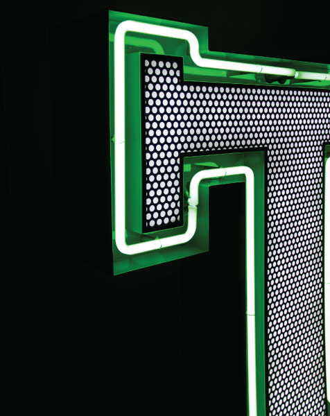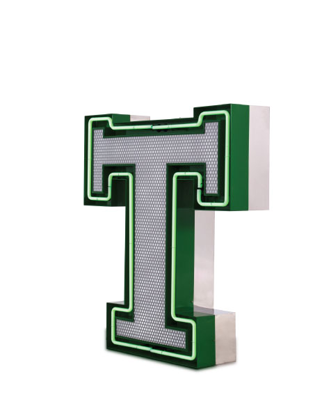 A remarkable lighting design remembering us of the college days, this handmade marquee letter is the one for the stars. A fun lighting design that is customizable on demand and available on a mini version, it has retro style mixed with the urban culture. Turning hypnotic at some point, the neon green of the bulbs and the height of 1 meter makes this a perfect lighting design to finish your design project. Available in a mini version, this lighting design can be wall mounted or served as a floor lamp in any room inside your house, or even in your backyard.