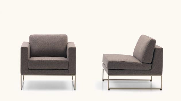 集合了極度美觀而又不失靈活性的五個80x80厘米的單獨座椅是組成高品質(zhì)休息區(qū)的主要元素:附加扶手或沒有扶手的座椅作為主體,擁有左右扶手的座椅則安排在兩側(cè)。使用方形不銹鋼框架上的螺絲接頭可以進行彼此的連接。規(guī)格為40x80厘米的玻璃茶幾可以放置在兩個座椅之間,規(guī)格為80x80厘米的玻璃茶幾則具有足夠放置物品的空間。
