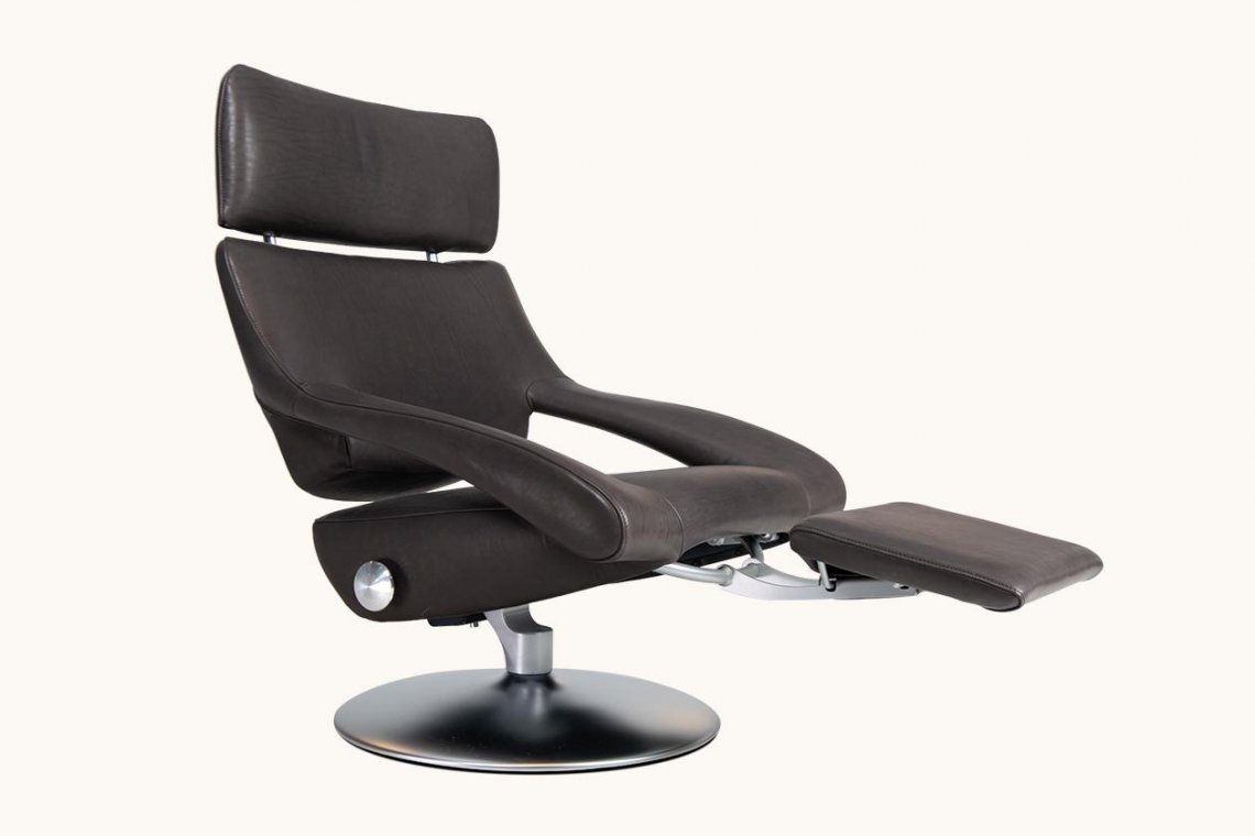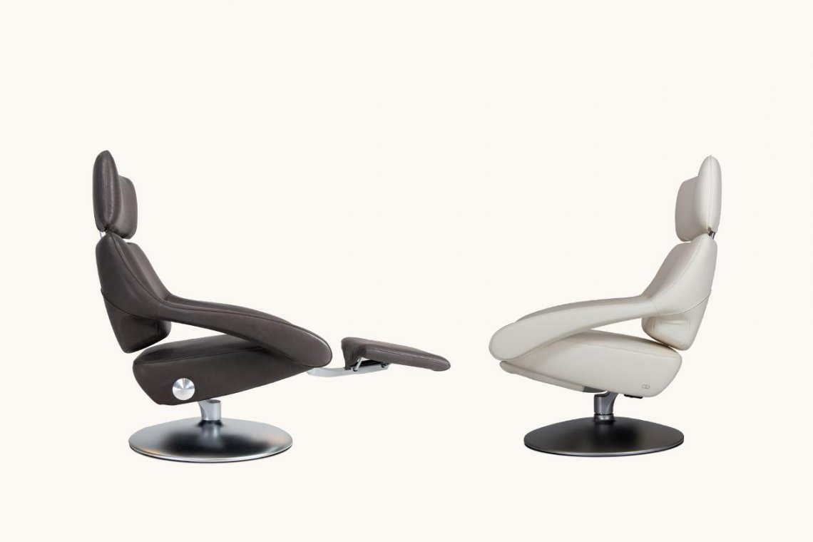 對前衛藝術的致敬,區別與任何的主流設計。其設計風格自信、清晰、直率和果斷。 底部支架創新的傾斜功能可以支持坐姿,有利于放松身心。此款具有低靠背或帶有頭靠的高靠背,以及折疊式的擱腿支架。