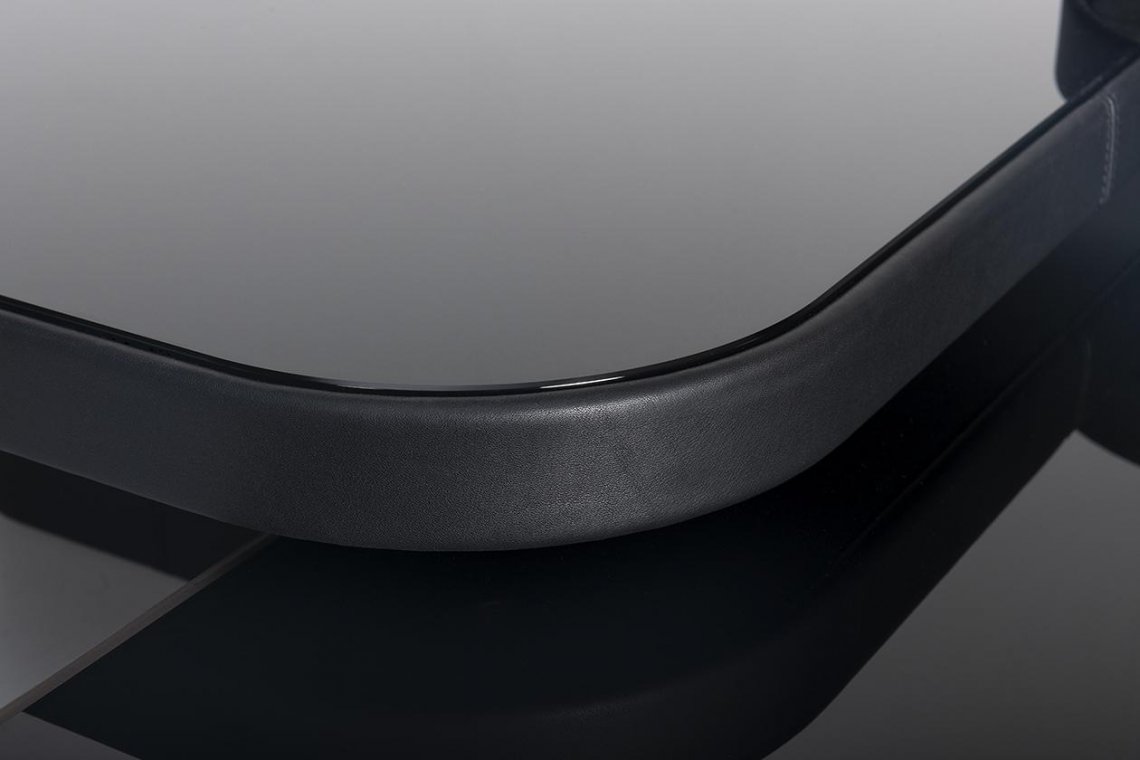 茶幾DS-3011的設計理念極為精簡:使用不同的材質能夠營造出令人難忘的風格。典雅的高品質皮條襯套茶幾的四周面,茶幾桌面本身使用深色的玻璃。濃厚的建筑結構風格突顯出精巧的外形特點,使茶幾桌面尤似漂浮在空中。