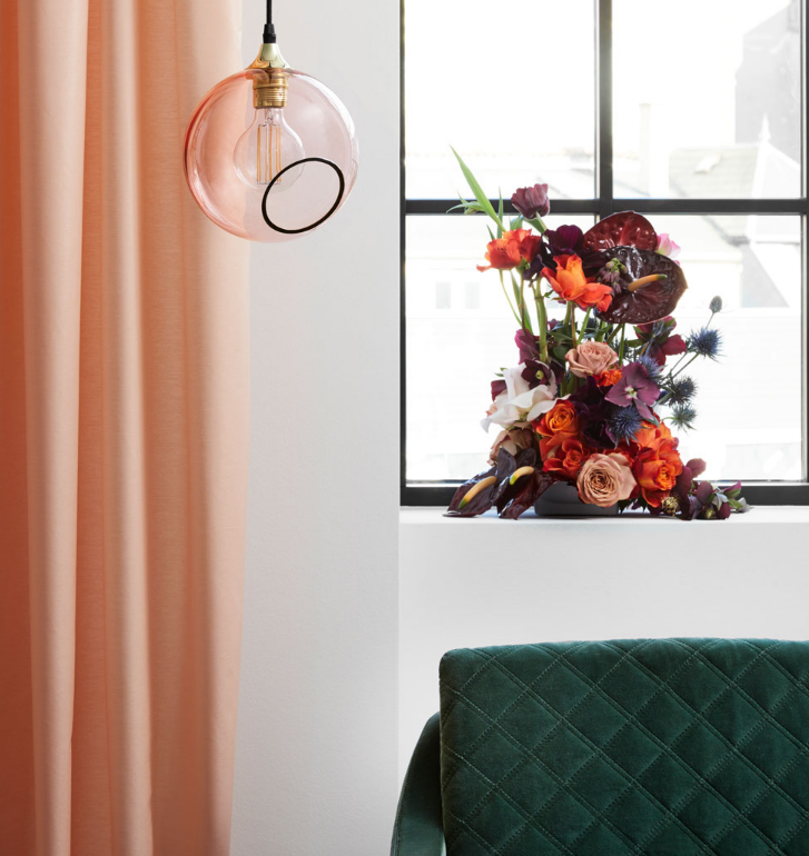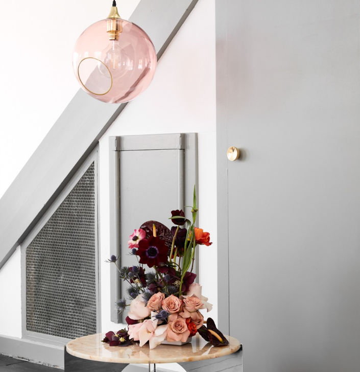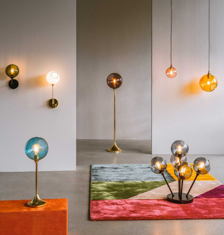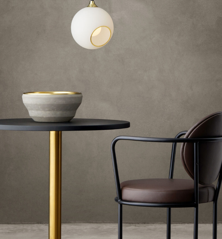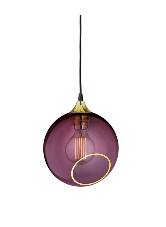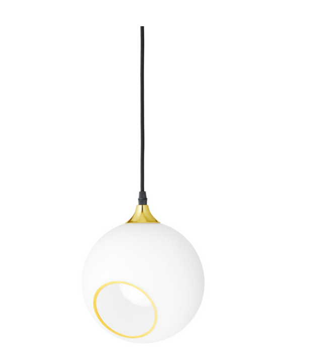 The Ballroom pendant is simple and excellent. The classic shape combined with the gold plated or black suspension makes this lamp timeless. The glass dome is mouth blown and hand painted. The edge of the faceted hole is either gold or silver.