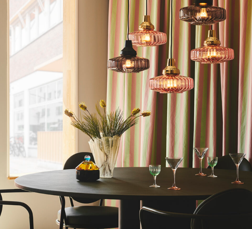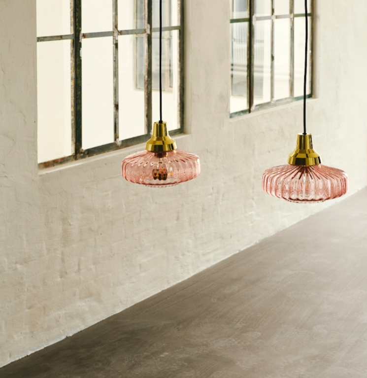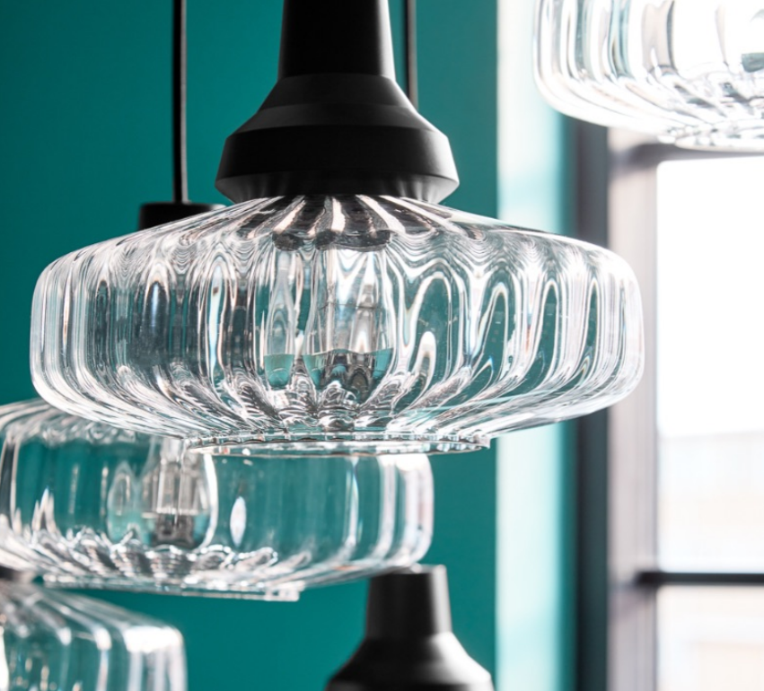 The New Wave Optic pendant spreads a wonderful and vivid light due to the shape of the mouth blown wavy glass.