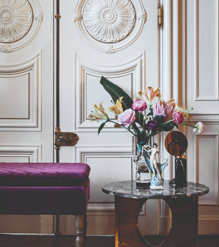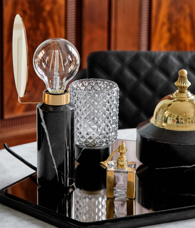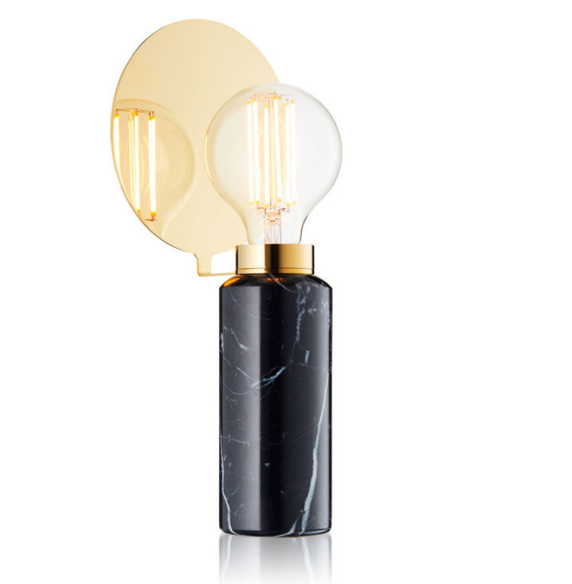 The Blindspot is a small table lamp that fits in anywhere with its simple elegance. The gold plate literally creates a blind spot so the lightbulb is hidden behind it – hence the name. Made in beautiful marble and brass.
