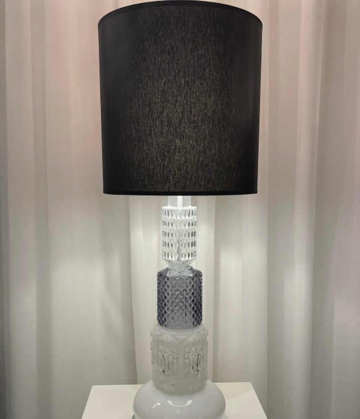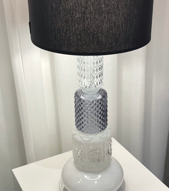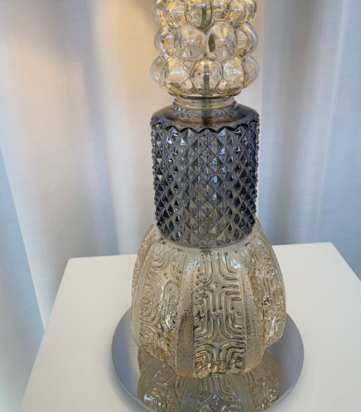 The Original Vintage Lamp is made of carefully selected vintage glasses with different shapes, colors and patterns which make every lamp unique and a piece of art. Both base and lamp are handmade in Denmark. All lamps are one of a kind.