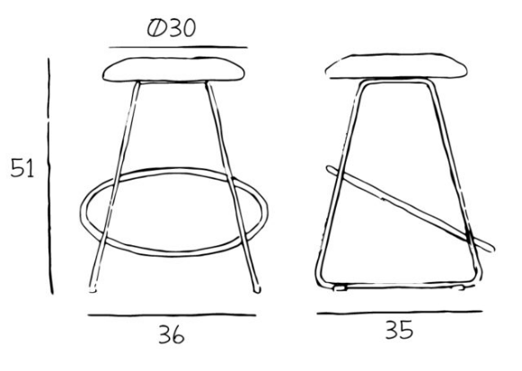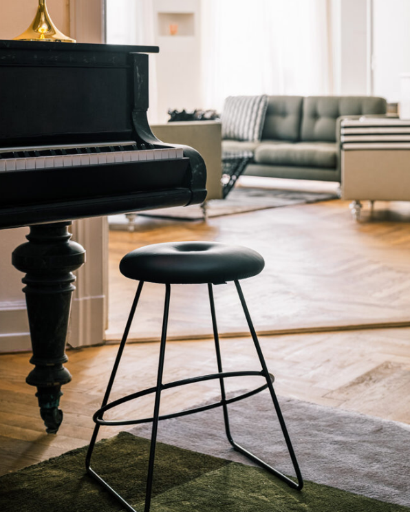 The rounded shapes in the Clown stool is inspired by the shape of the circus arena – hence the name Clown. The idea with the ring across the frame is that both adults and children can rest their feet on the rack. The Clown Collection is available in three chair sizes and can be customized after desire. Made in Denmark.