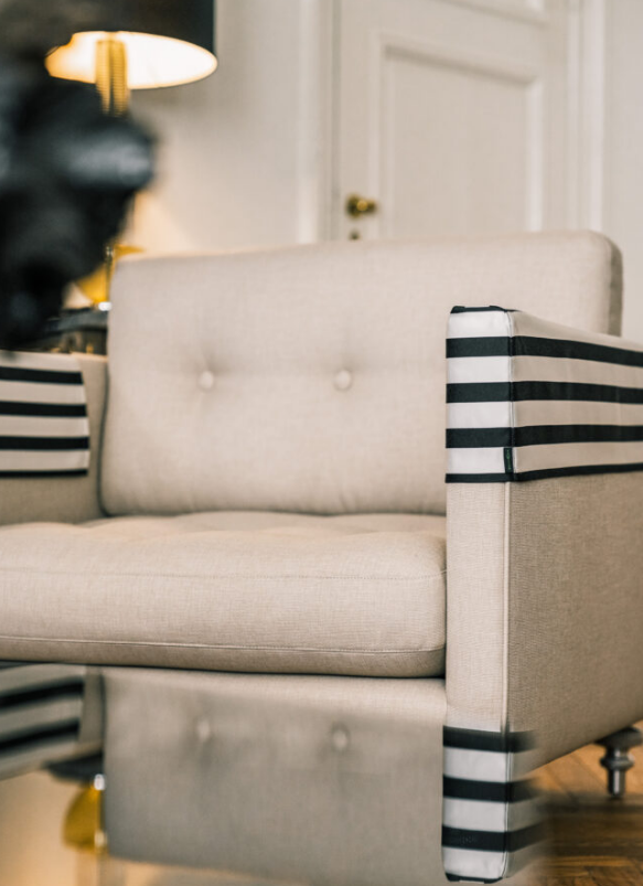 The Dallas Chair is inspired by time and trends – it is classic and yet fashionably comfortable. The architectural and simple form with the voluminous rococo inspired legs is a daring mix and ads a nice twist to the sofa and together with the sleeves you have a perfect opportunity to personalize your furniture.